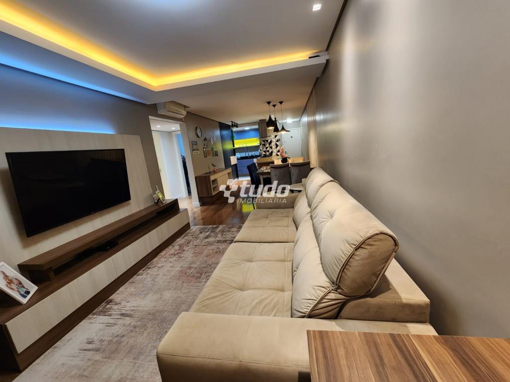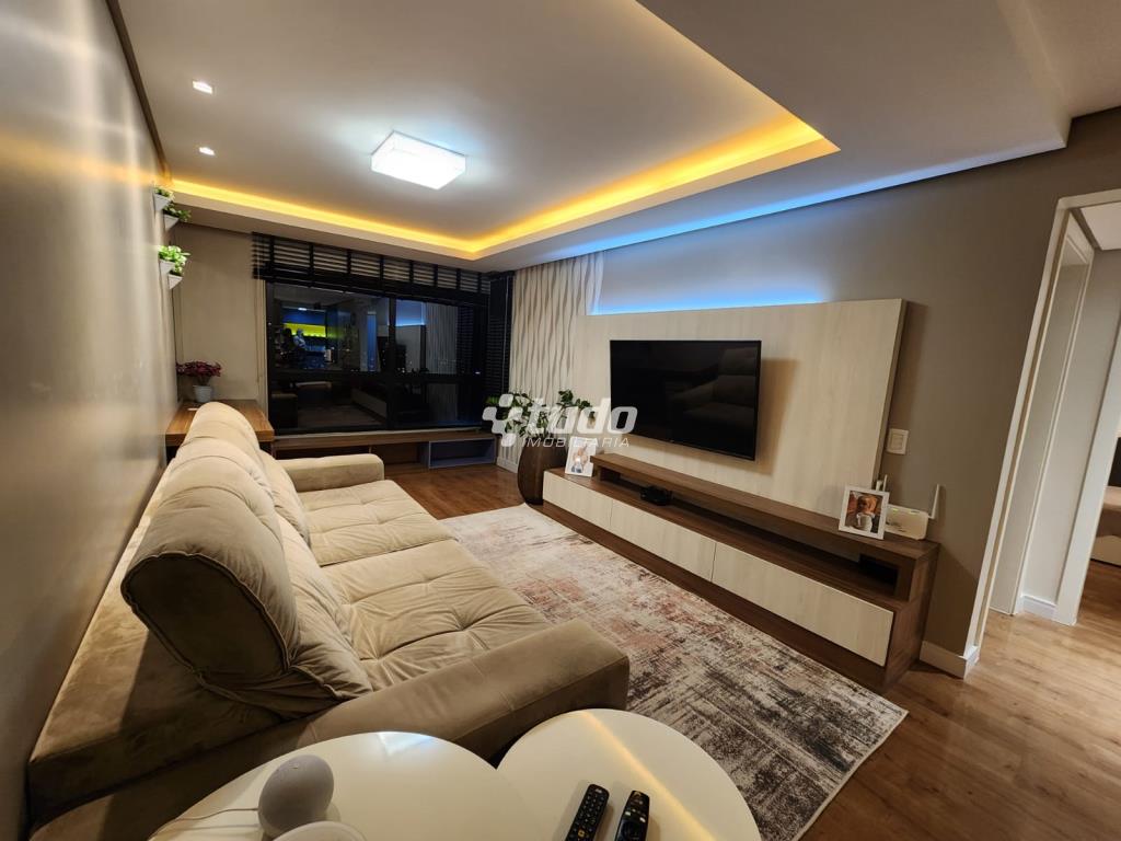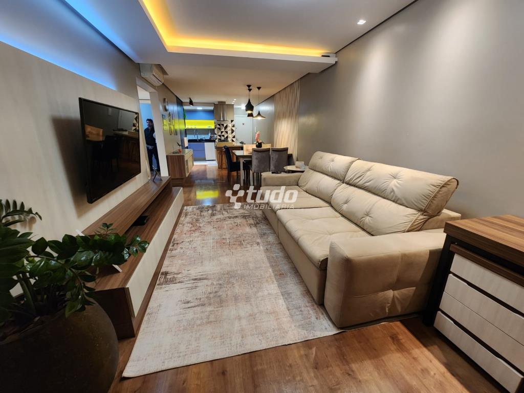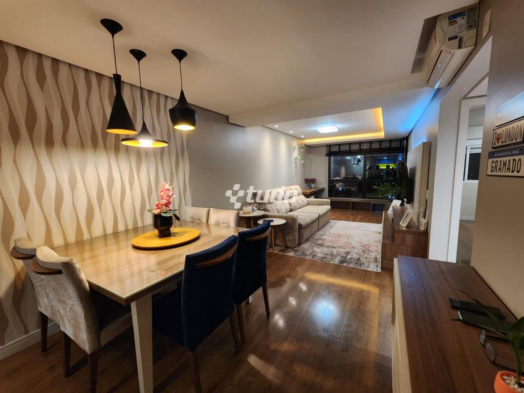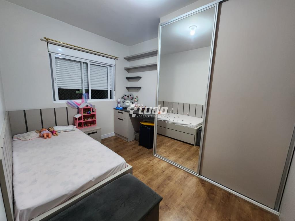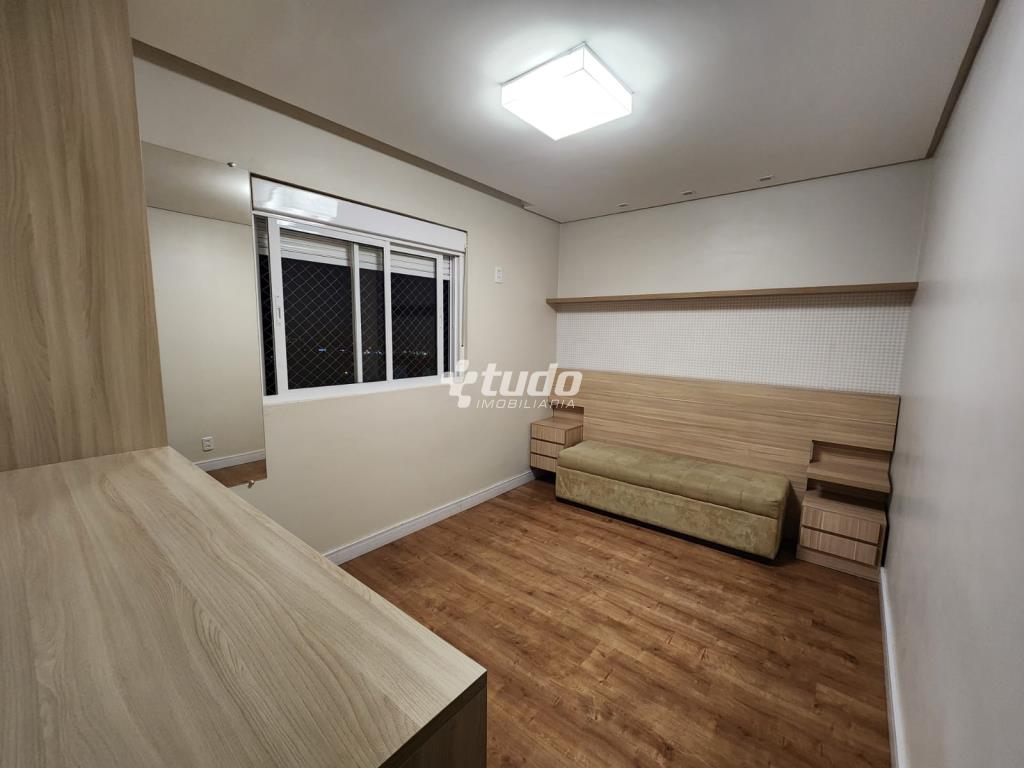 87,84m² privativos, 03 dormitórios, sala ampla (2 ambientes), cozinha / área de serviço, churrasqueira, garagem. Permanecem todos os móveis planejados.