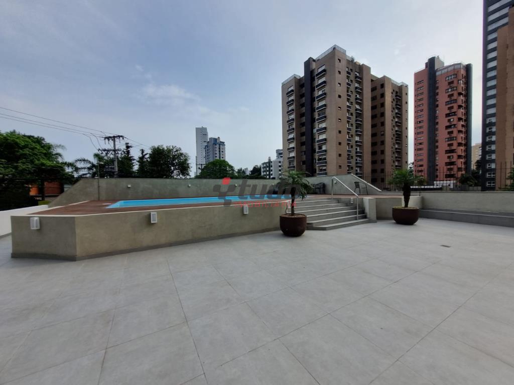 Edifício com elevador panorâmico, salão de festas, piscina e gás central.