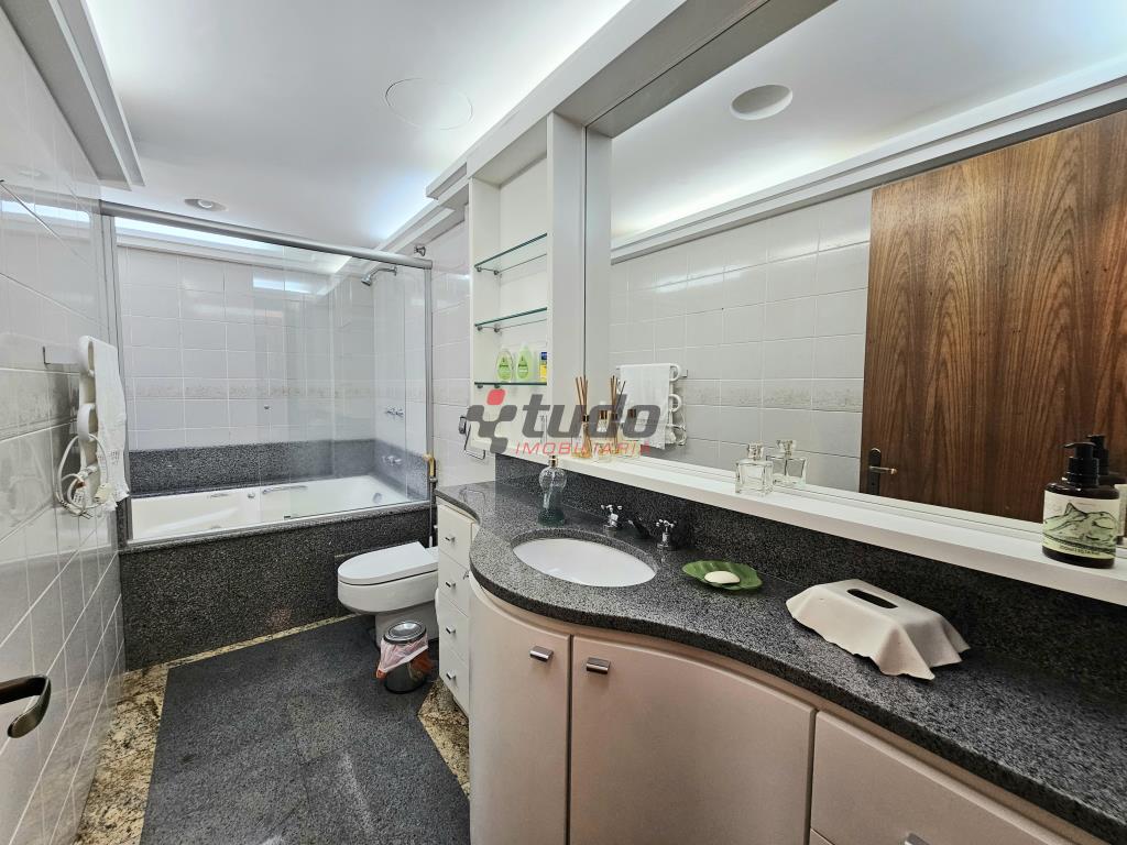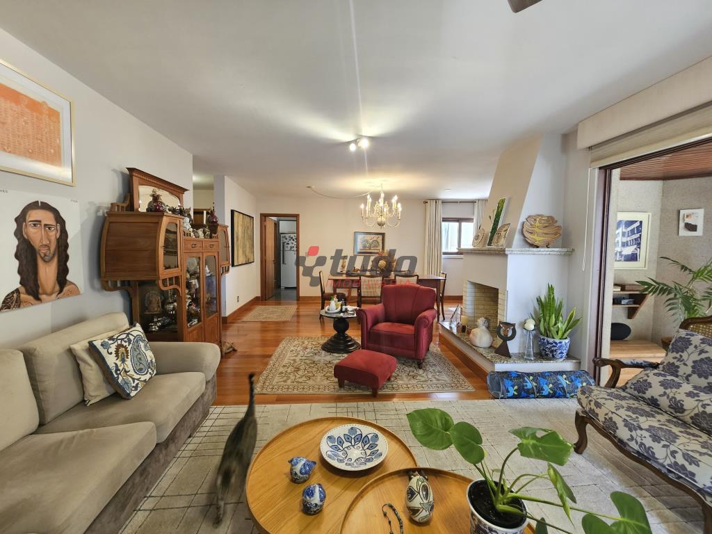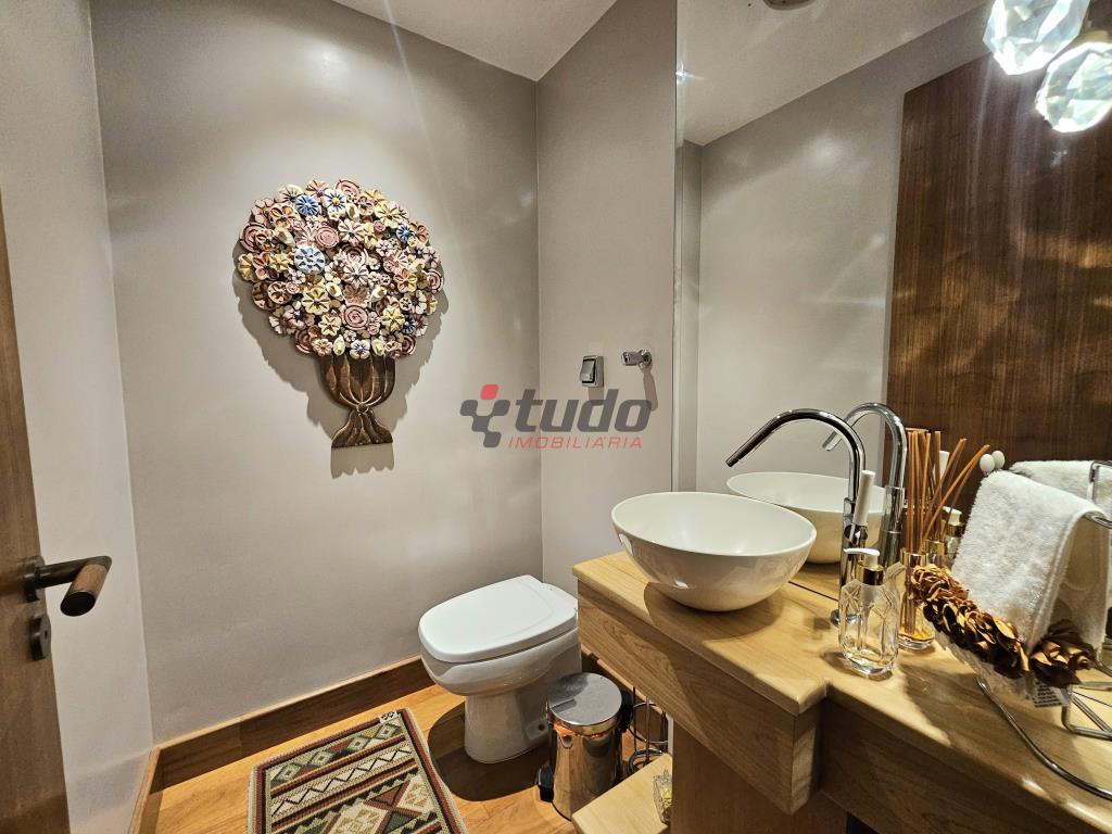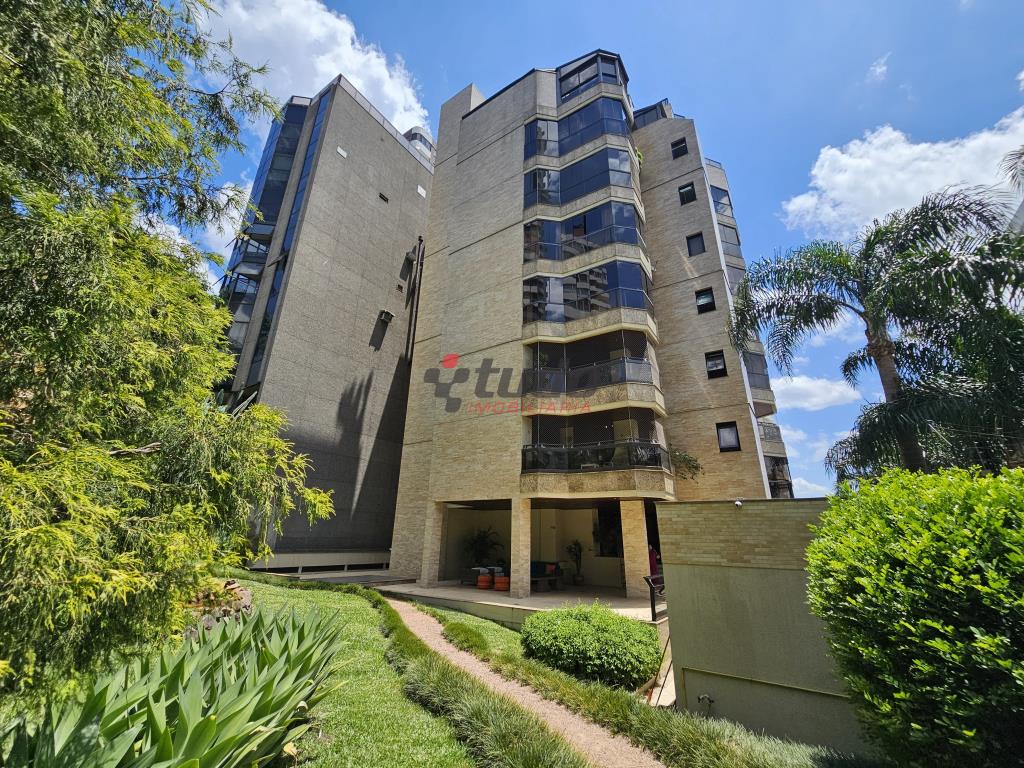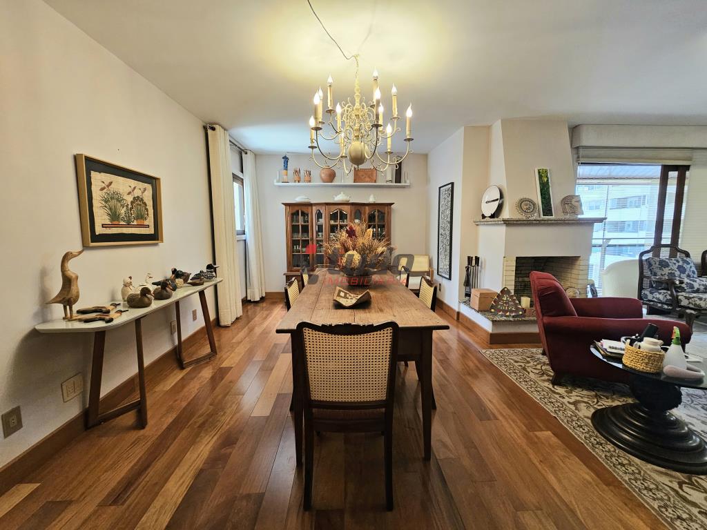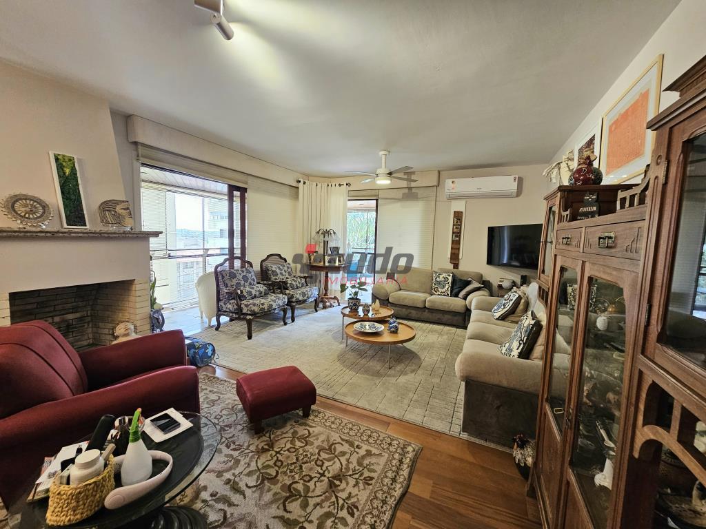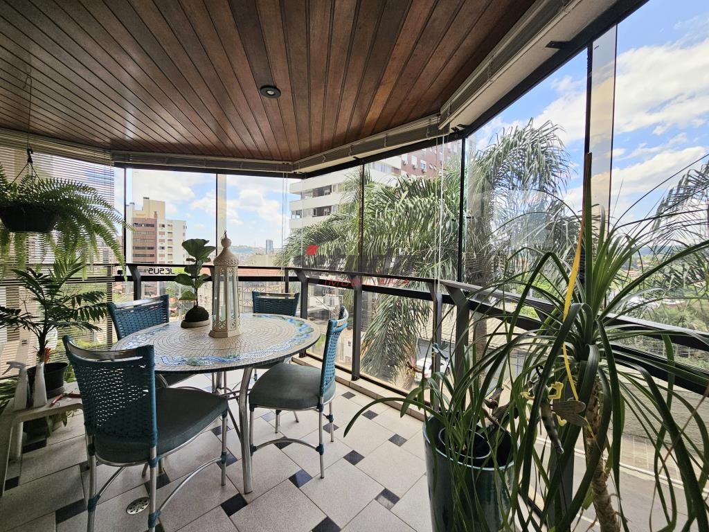 Apartamento com 3 dormitórios, sendo 1 suíte, todos os dormitórios com sacada, 3 banheiros (incluindo lavabo no hall de entrada), ampla cozinha, lavanderia separada, sala de estar com lareira e sacada com vista panorâmica, dependência de empregada, 2 vagas de garagem.