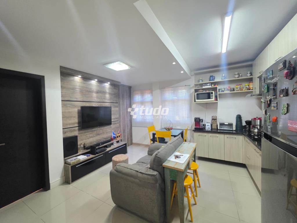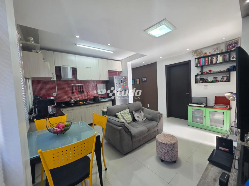 54,55m² privativos, 02 dormitórios, sala, cozinha e area de serviço, garagem coberta, apartamento térreo, ficam todos os móveis planejados.