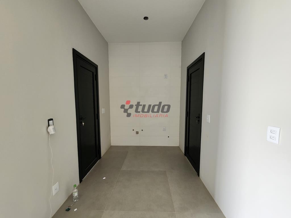 Os acabamentos incluem piso porcelanato, esquadrias em alumínio preto e uma entrada imponente com uma porta pivotante.