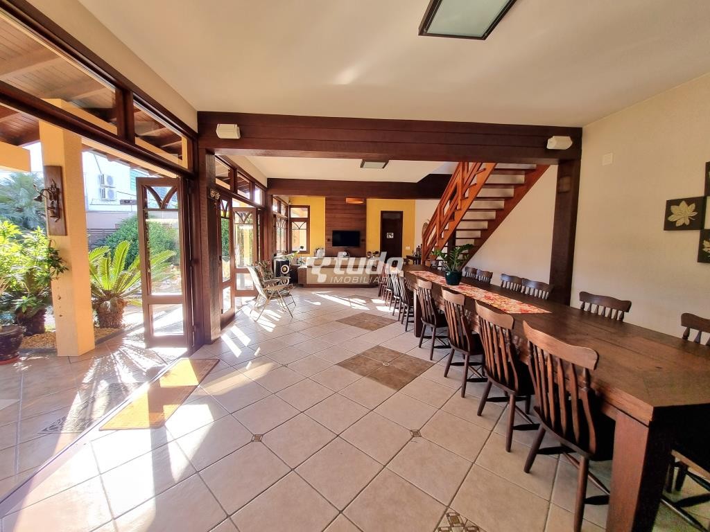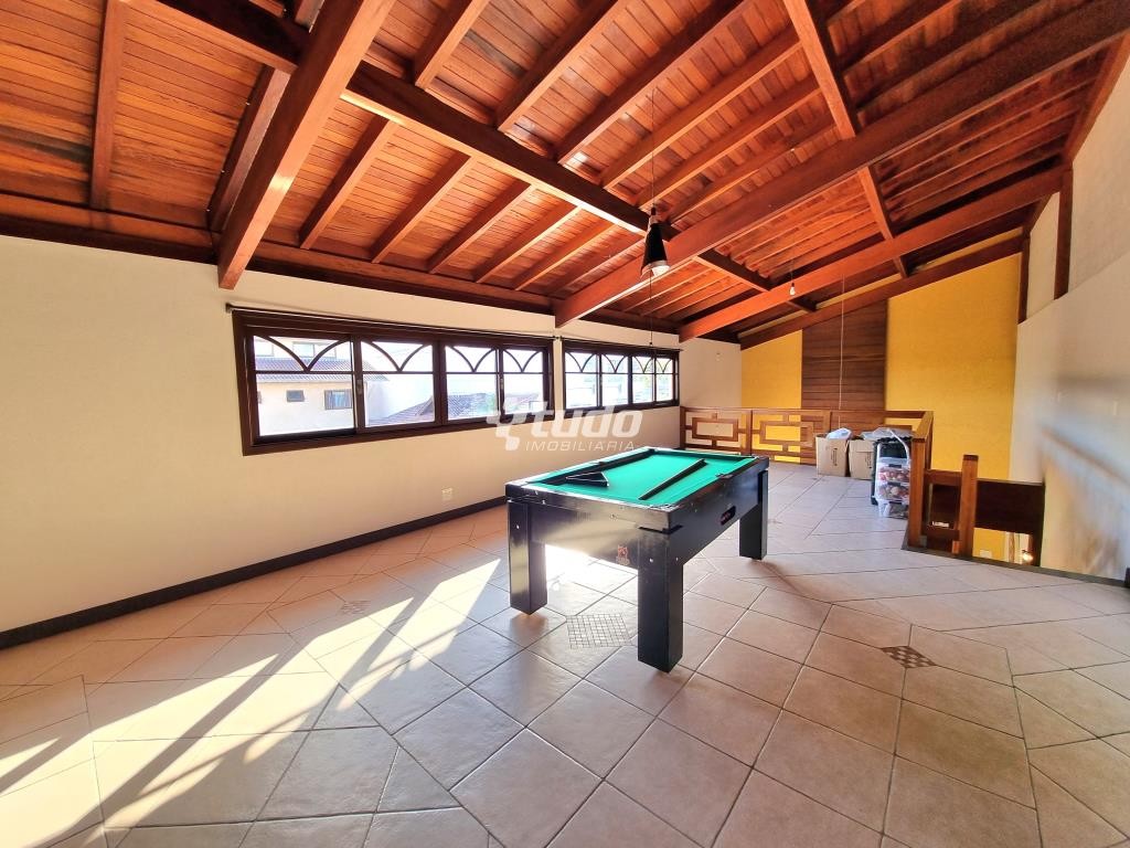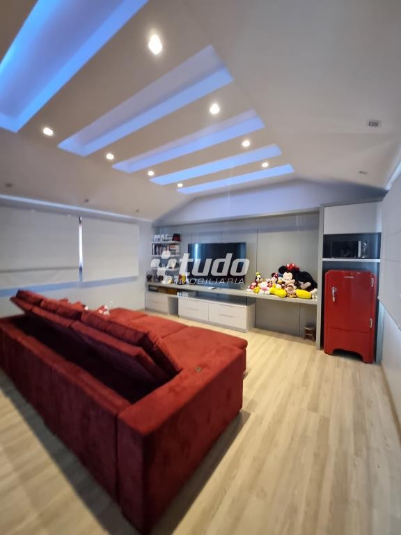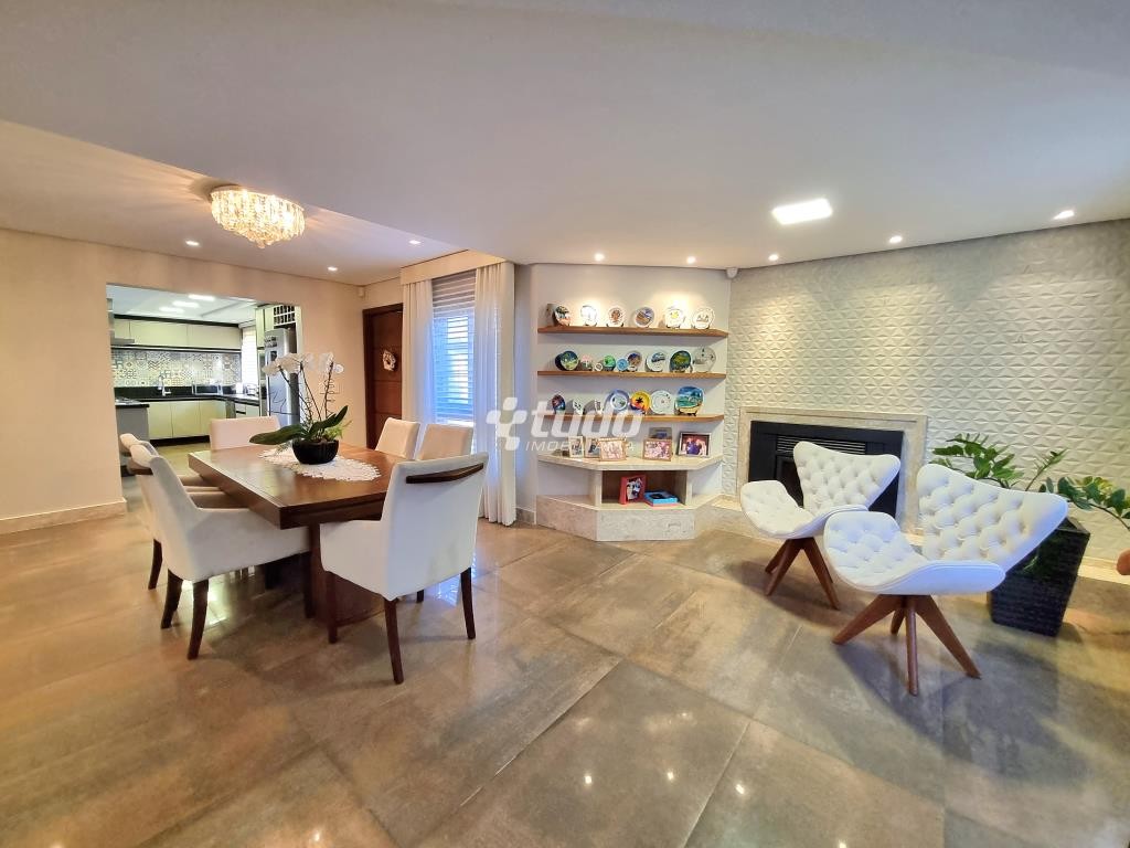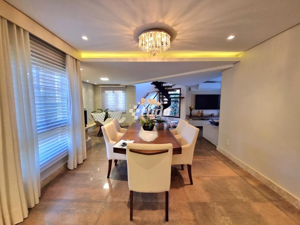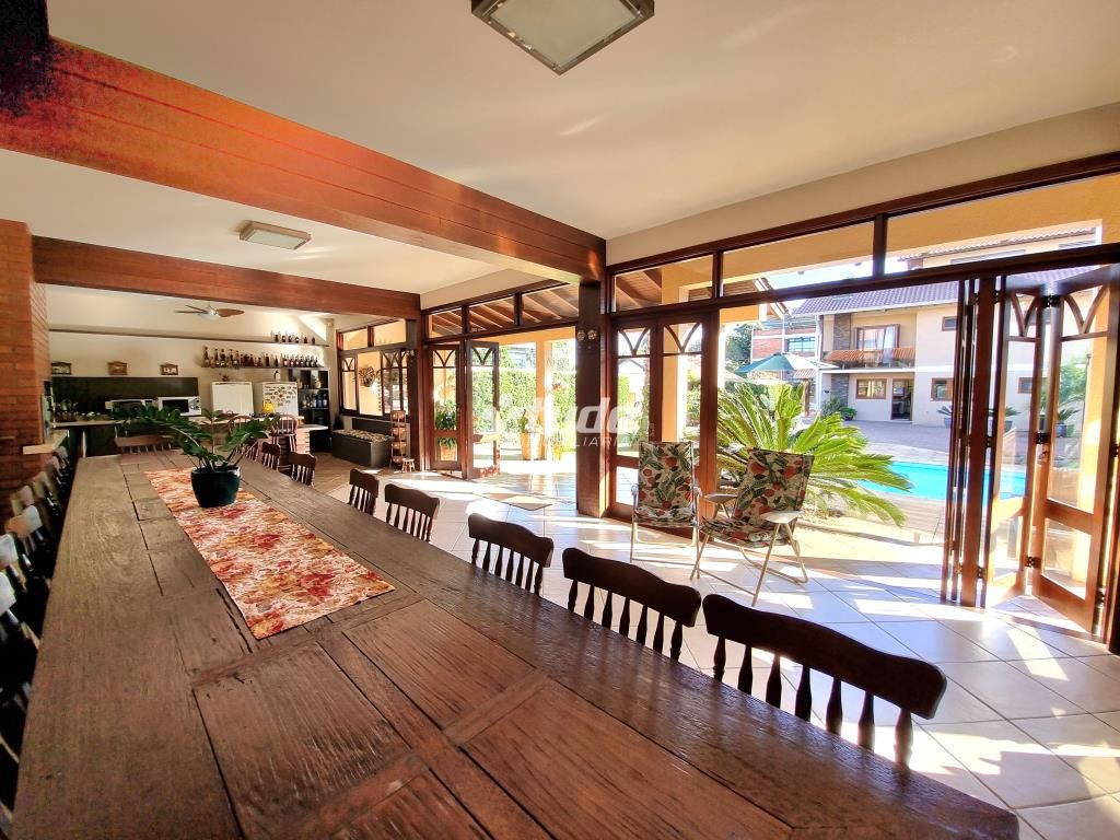 A área externa é um verdadeiro oásis, com um lindo paisagismo, piscina e garagem coberta para 02 veículos. E para os amantes de entretenimento, este imóvel ainda possui um excelente e amplo salão de festas, com móveis sob medida, ilha, fogão campeiro e churrasqueira, uma mesa com espaço para 20 pessoas, uma bela sala com pé direito duplo, banheiro e mezanino sendo utilizado como espaço de jogos.