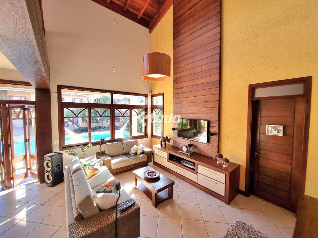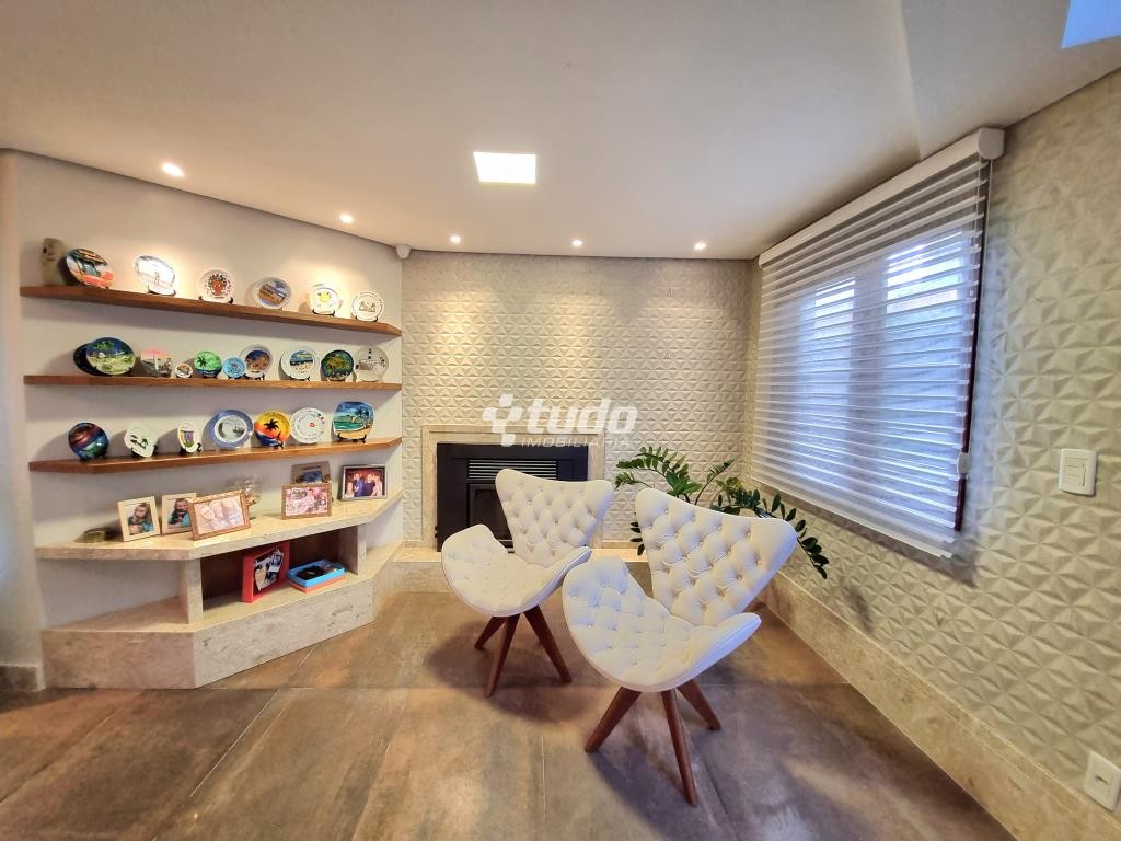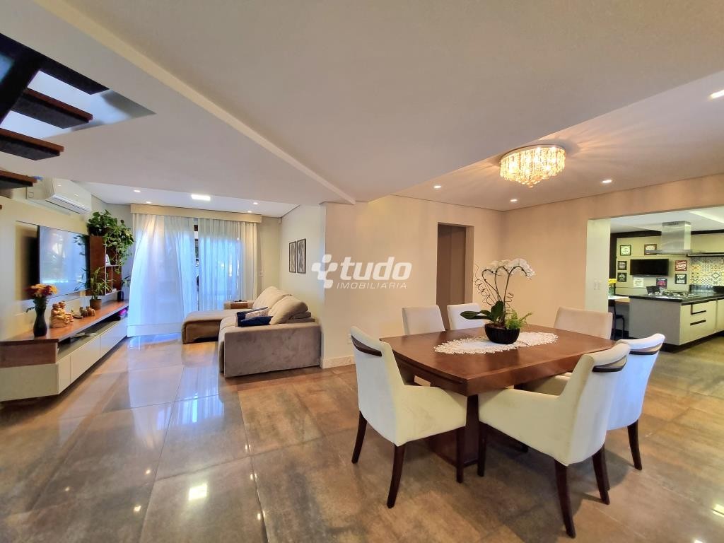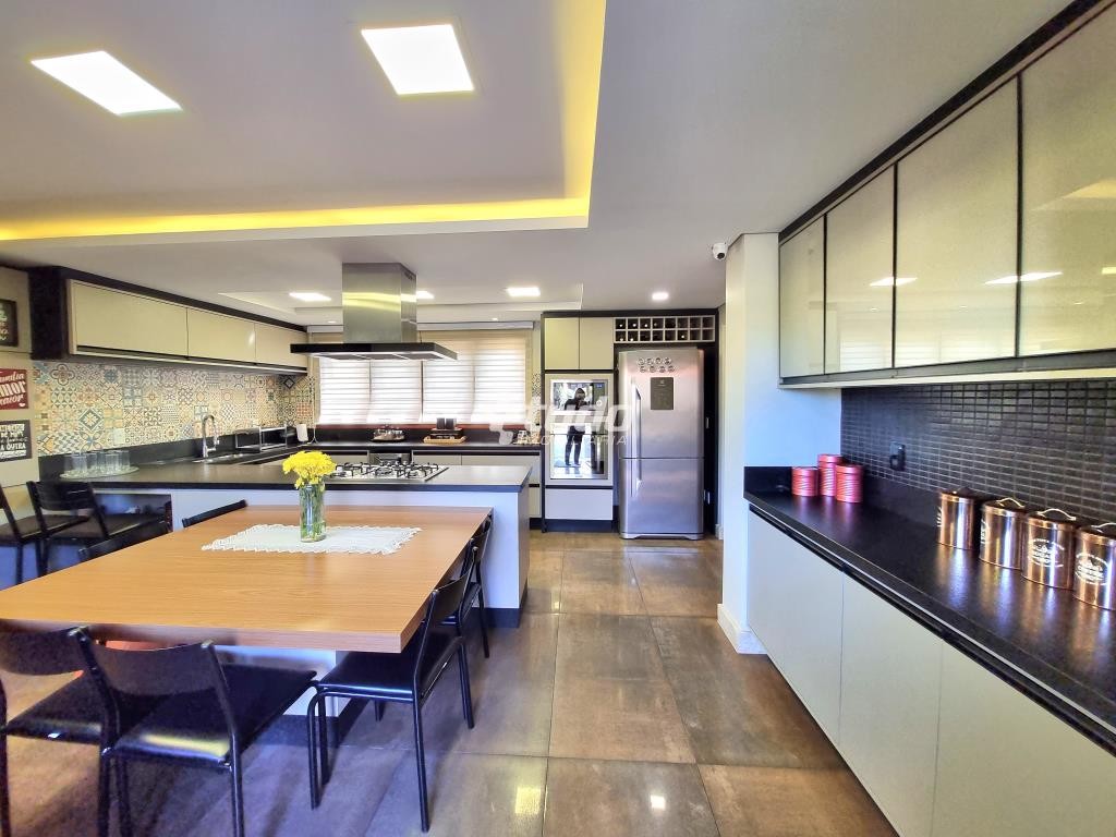 A casa possui 03 dormitórios, incluindo uma suíte com duas sacadas e closet, sala de estar e jantar aconchegantes, cozinha com móveis planejados, tipo americano e fogão campeiro, 03 banheiros, espaço home office, sala de cinema equipada e ainda uma sala fitness.