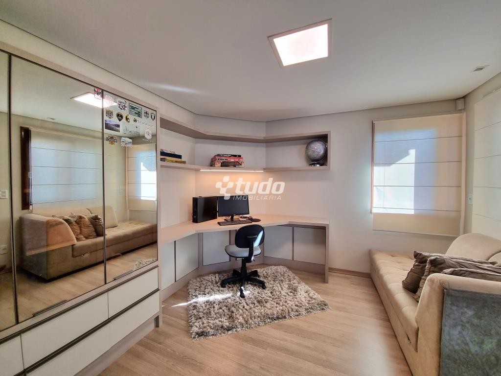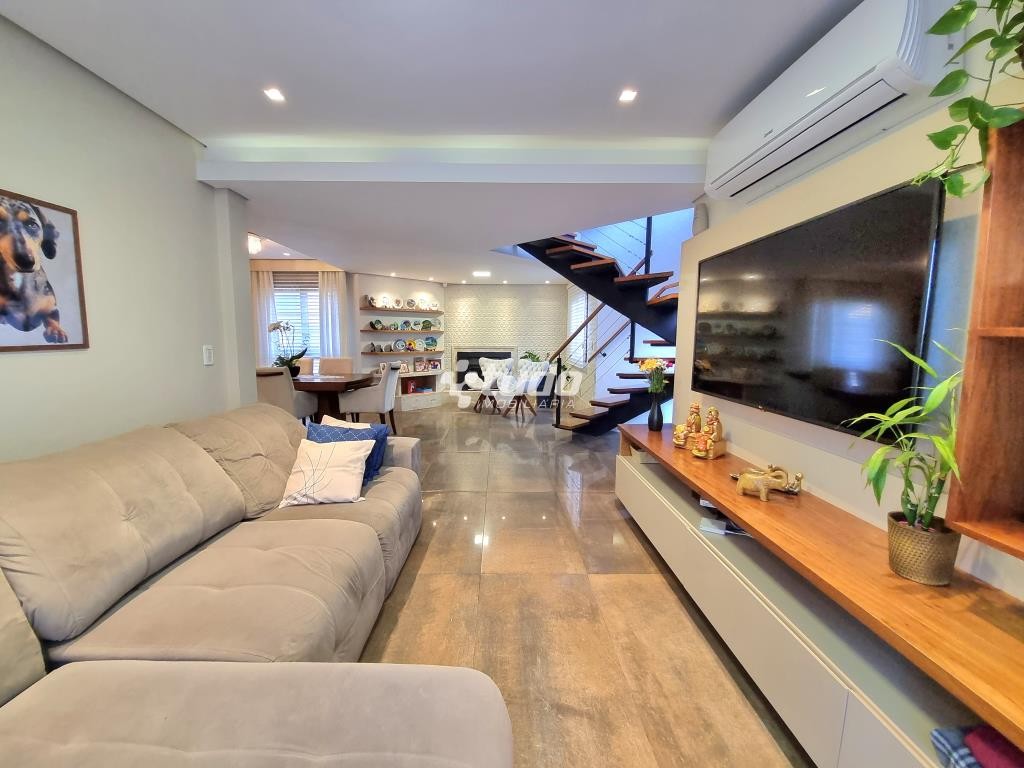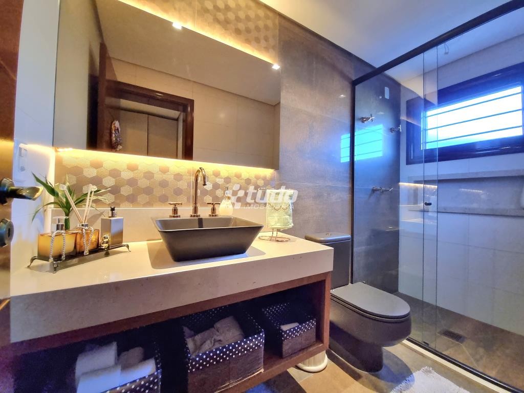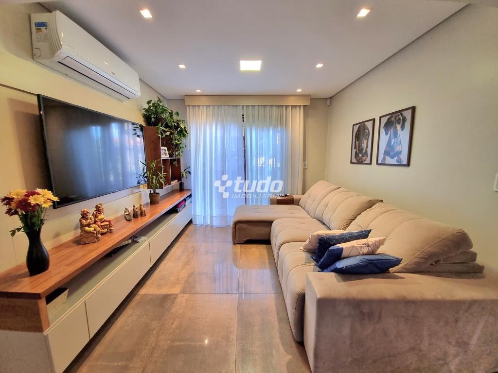 A casa possui 03 dormitórios, incluindo uma suíte com duas sacadas e closet, sala de estar e jantar aconchegantes, cozinha com móveis planejados, tipo americano e fogão campeiro, 03 banheiros, espaço home office, sala de cinema equipada e ainda uma sala fitness.