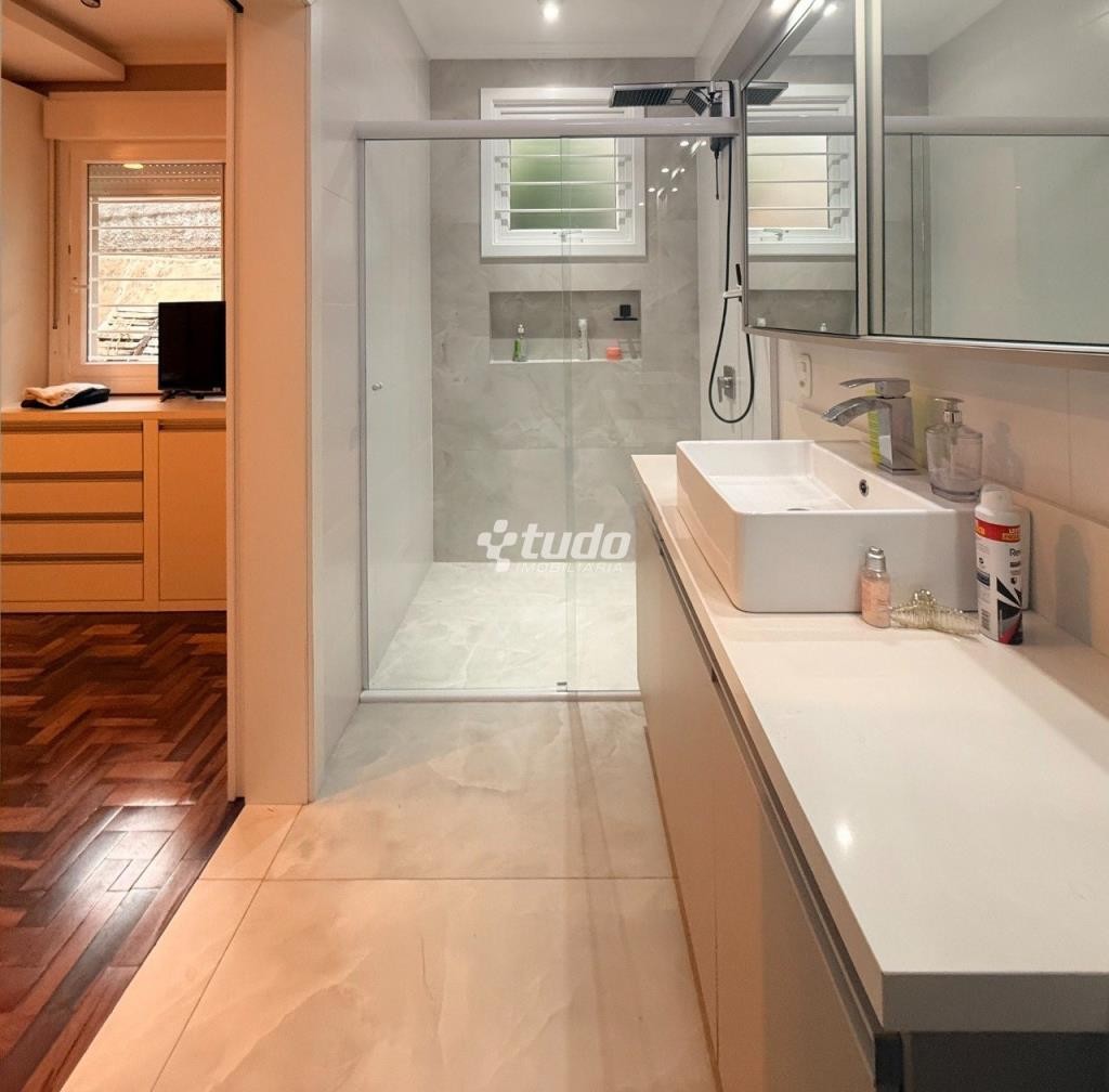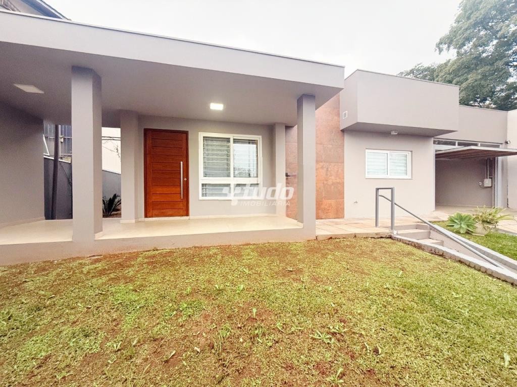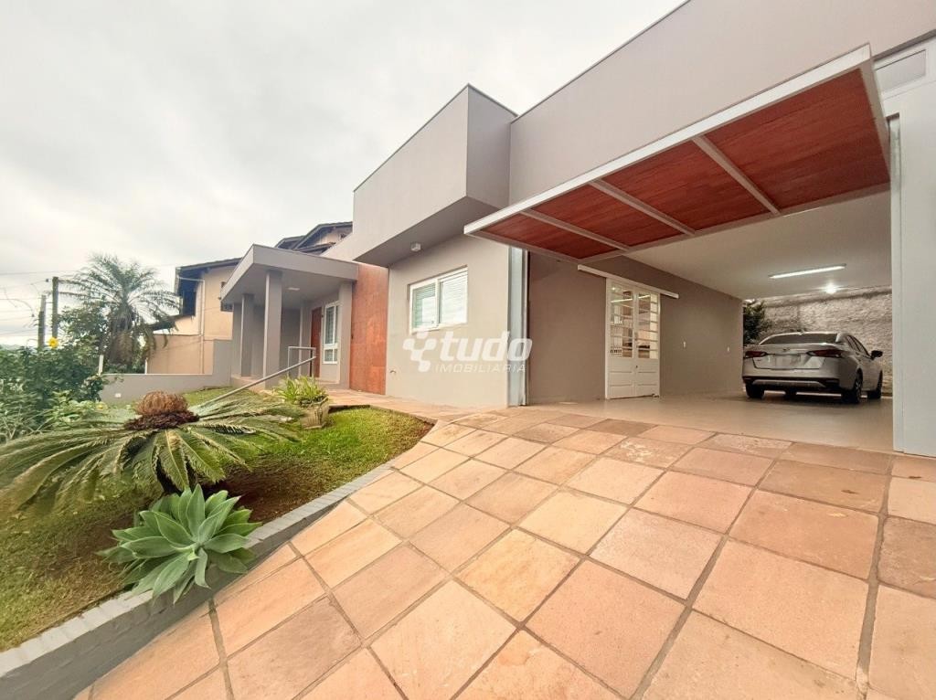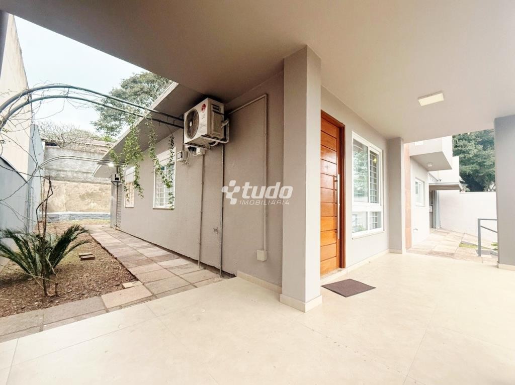 Casa com 3 dormitórios, suíte, ar-condicionado, churrasqueira, escritório, lavanderia, murado, piso em porcelanato, varanda, sala de reunião e jardim de inverno, próximo ao Vila Rosa, no bairro Operário, em Novo Hamburgo.