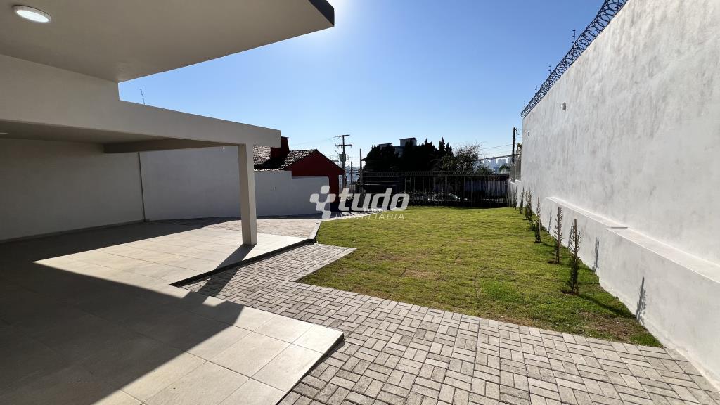 Pátio amplo, murado e gradeado.