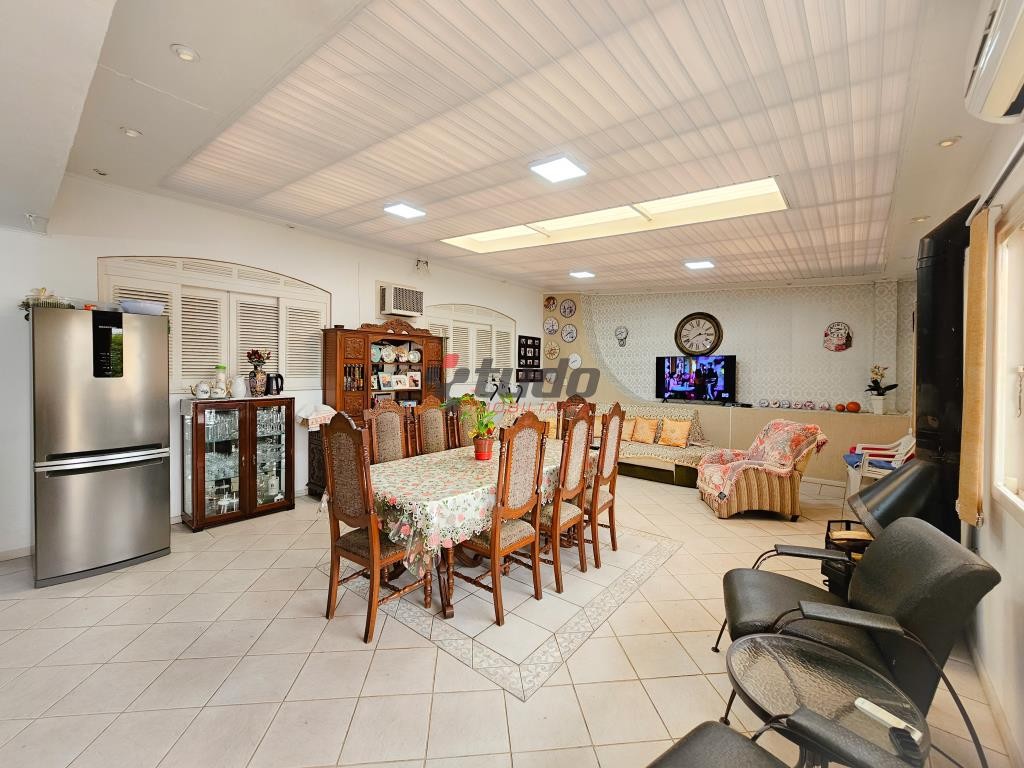 O piso superior é composto por uma área residencial espaçosa, com 3 dormitórios, três salas bem distribuídas, churrasqueira, sacada e uma cozinha equipada com móveis planejados.