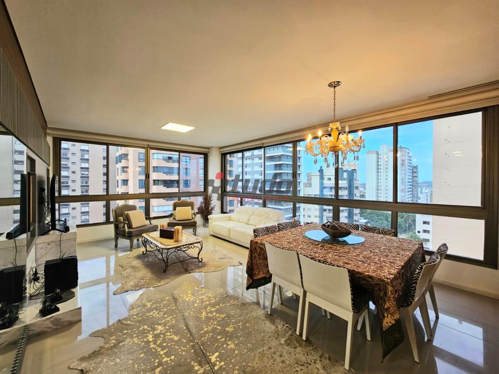 118m² privativos, apartamento de alto padrão com localização privilegiada, sala de estar e jantar integradas, cozinha e área de serviço separadas, churrasqueira na cozinha, lavabo, piso em porcelanto e laminado, 1 suíte master, 2 suítes americanas.