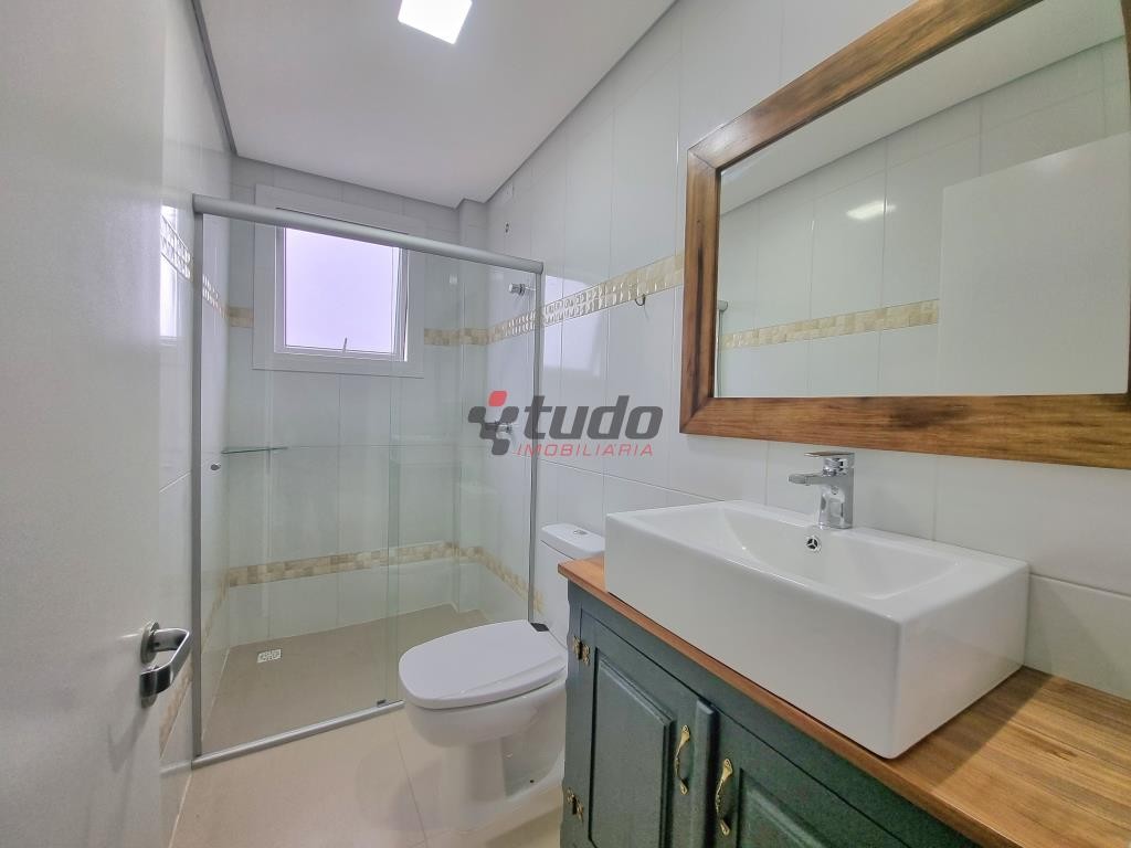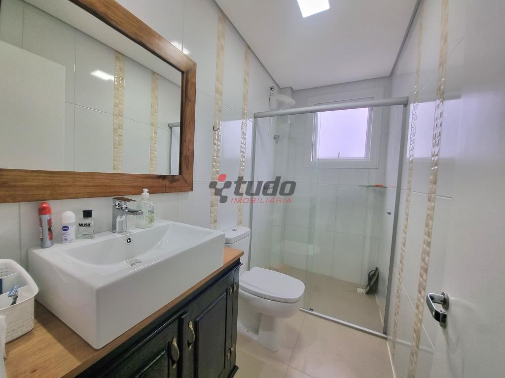 Apartamentos com dois dormitórios (sendo um suíte) sala dois ambientes, banheiro social, cozinha, área de serviço e ampla sacada com churrasqueira. Piso em porcelanato. Duas vagas de garagem.
