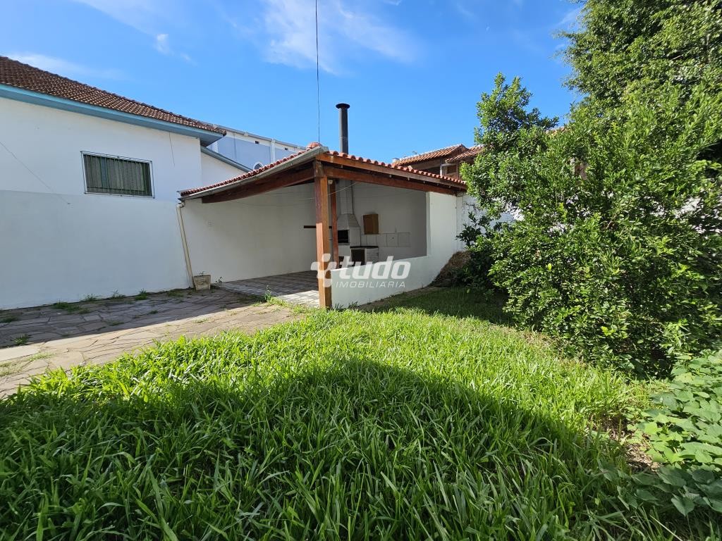 Casa com 2 dormitórios, 2 banheiros e garagem coberta para 3 carros, quiosque com churrasqueira e amplo pátio, próxima à Prefeitura, no bairro Rondônia, em Novo Hamburgo.