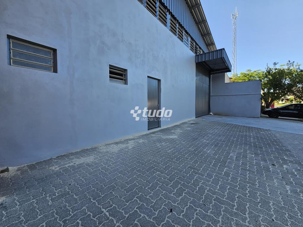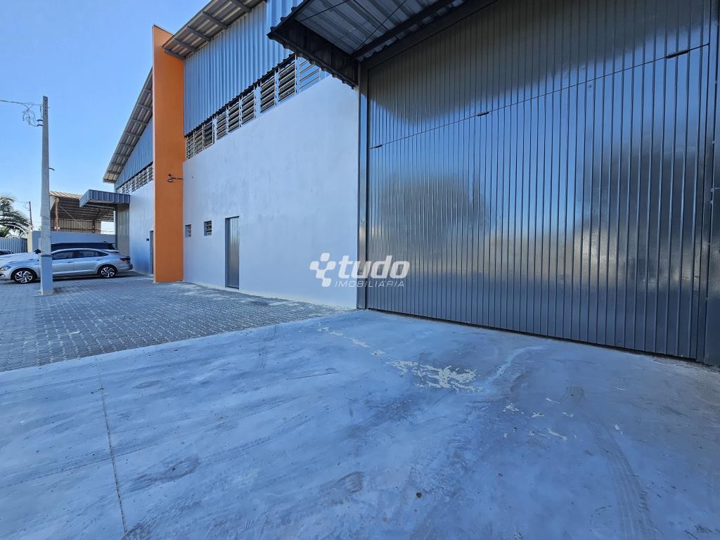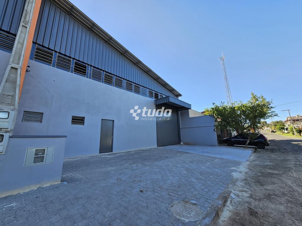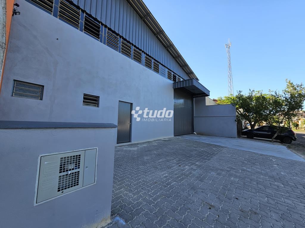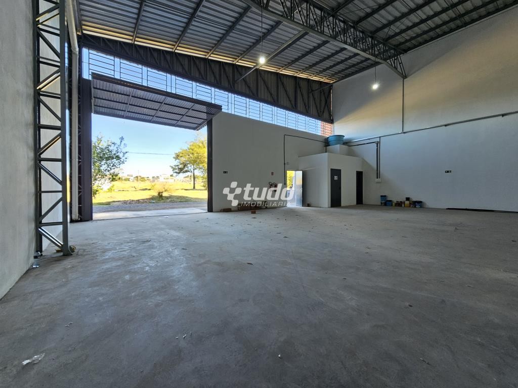 Prédio comercial com pé-direito alto, entrada para caminhão, dois banheiros e estacionamento na frente. Localizado próximo à RS-239, no bairro Lago Azul, em Estância Velha.