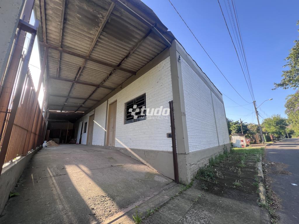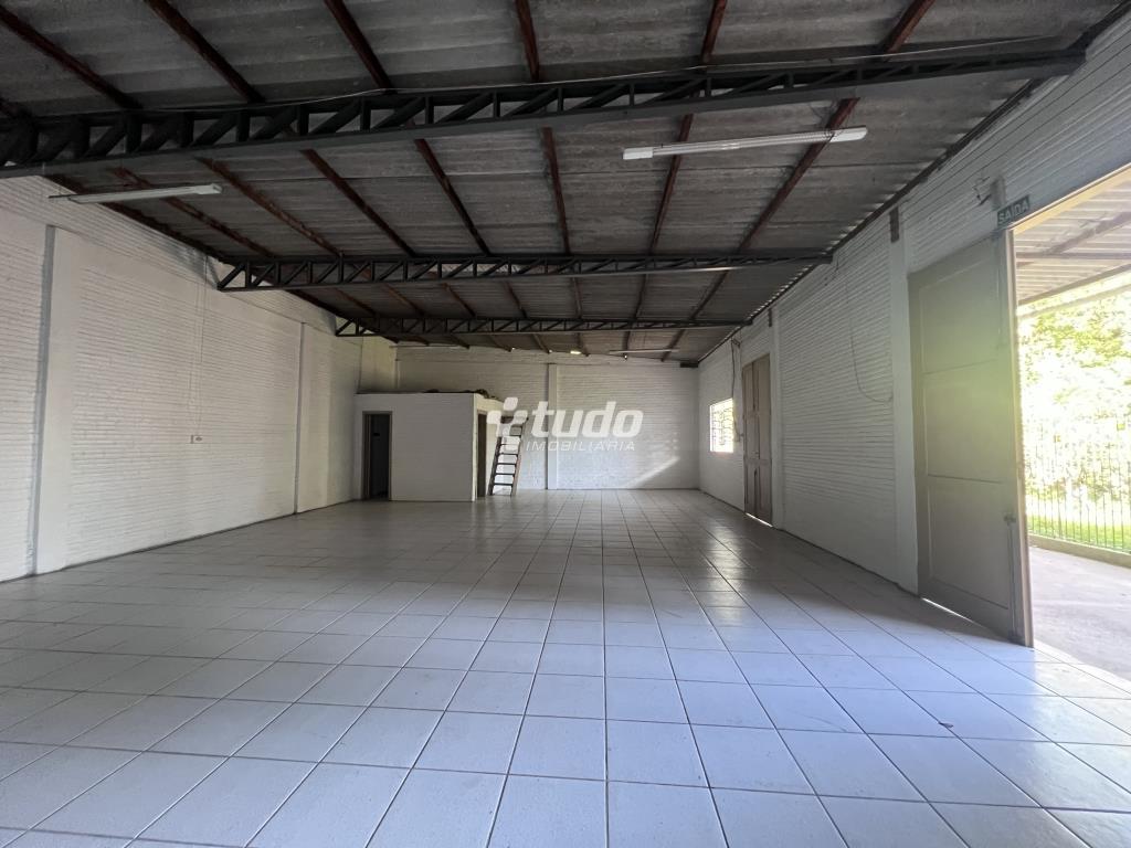 Prédio comercial com 315m², dois banheiros, piso em concreto, entrada lateral.