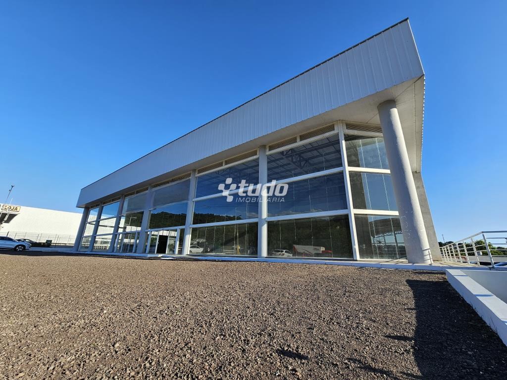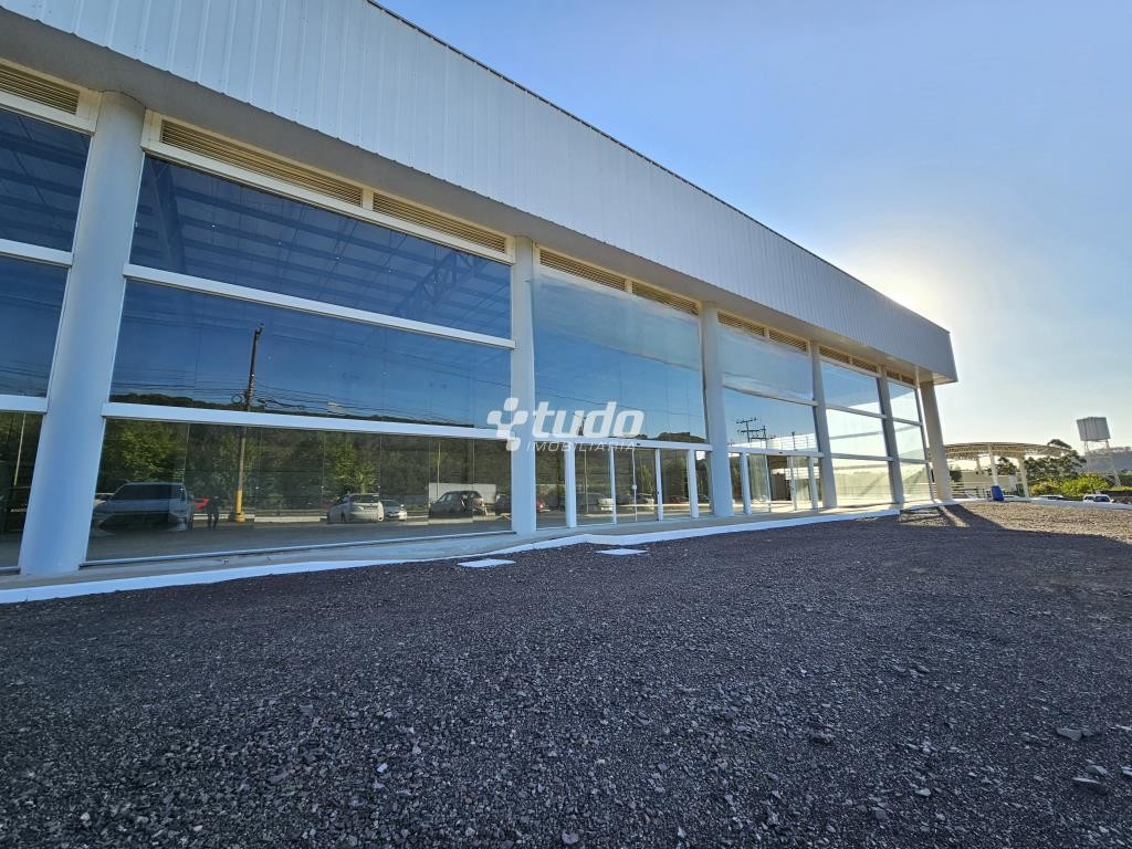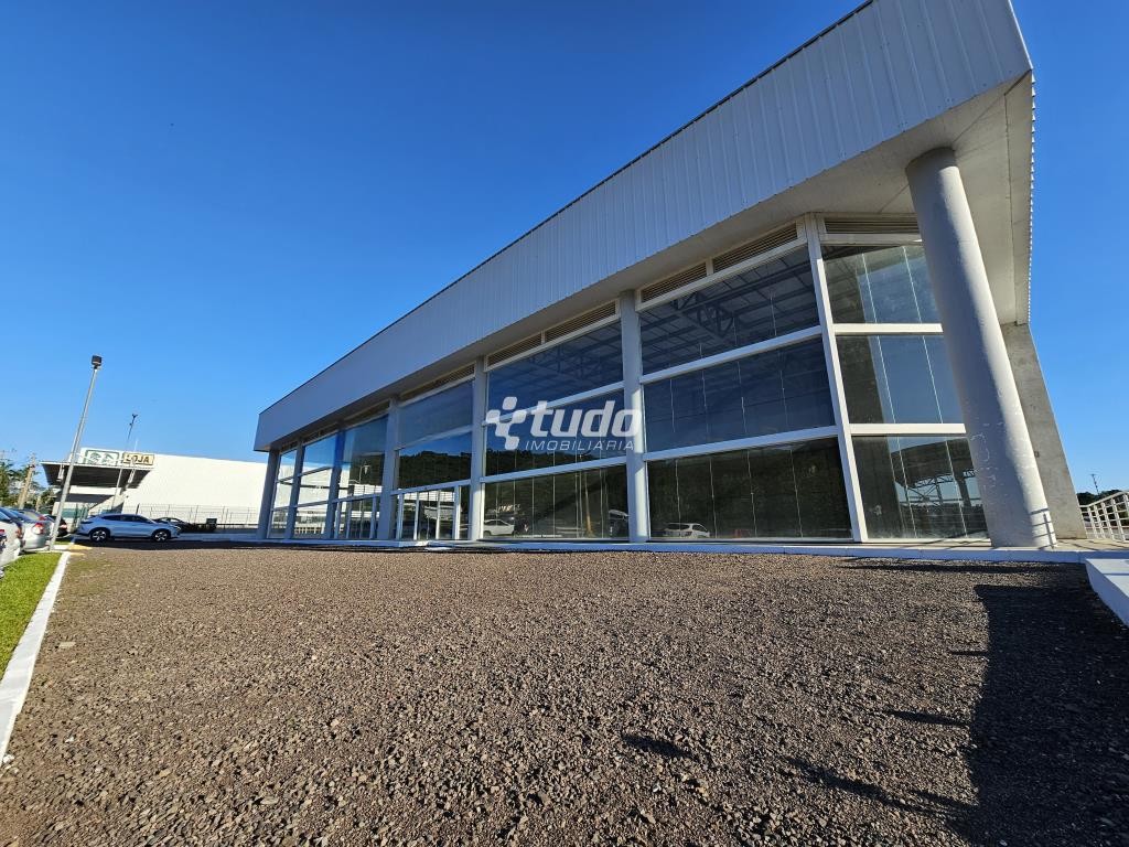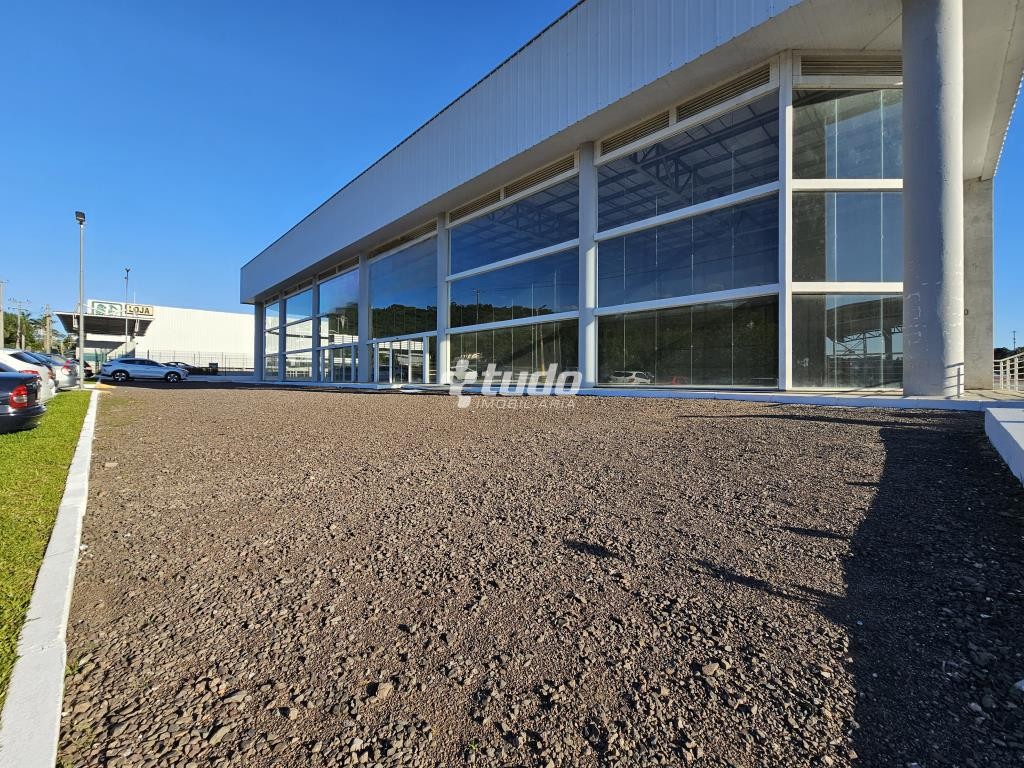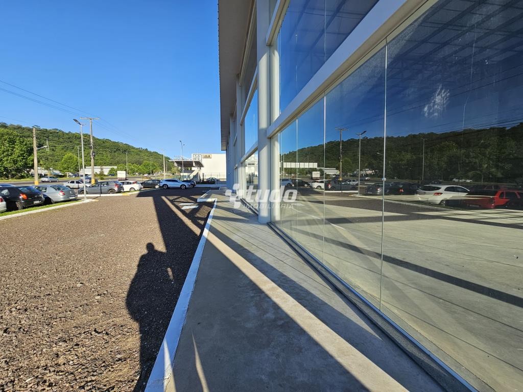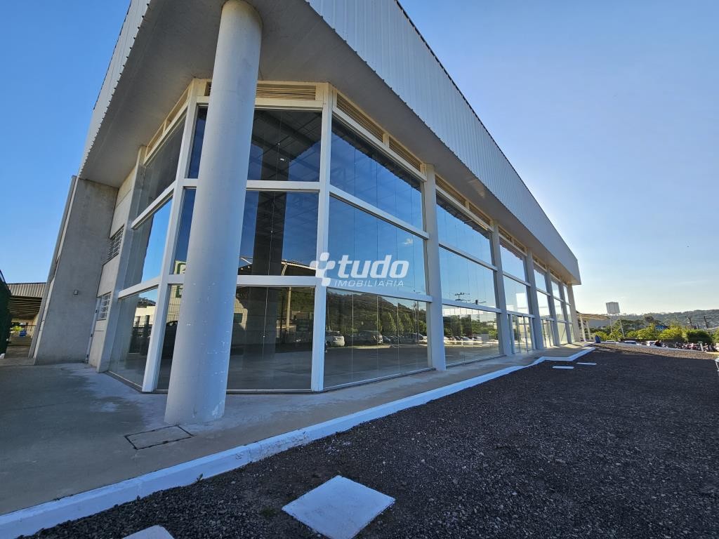 Prédio comercial com pé-direito alto de 8 metros, vitrine, opção para mezanino, duas esperas para cozinha, dois banheiros com acessibilidade e quatro lavabos adicionais. Localizado às margens da rodovia, em Novo Hamburgo.