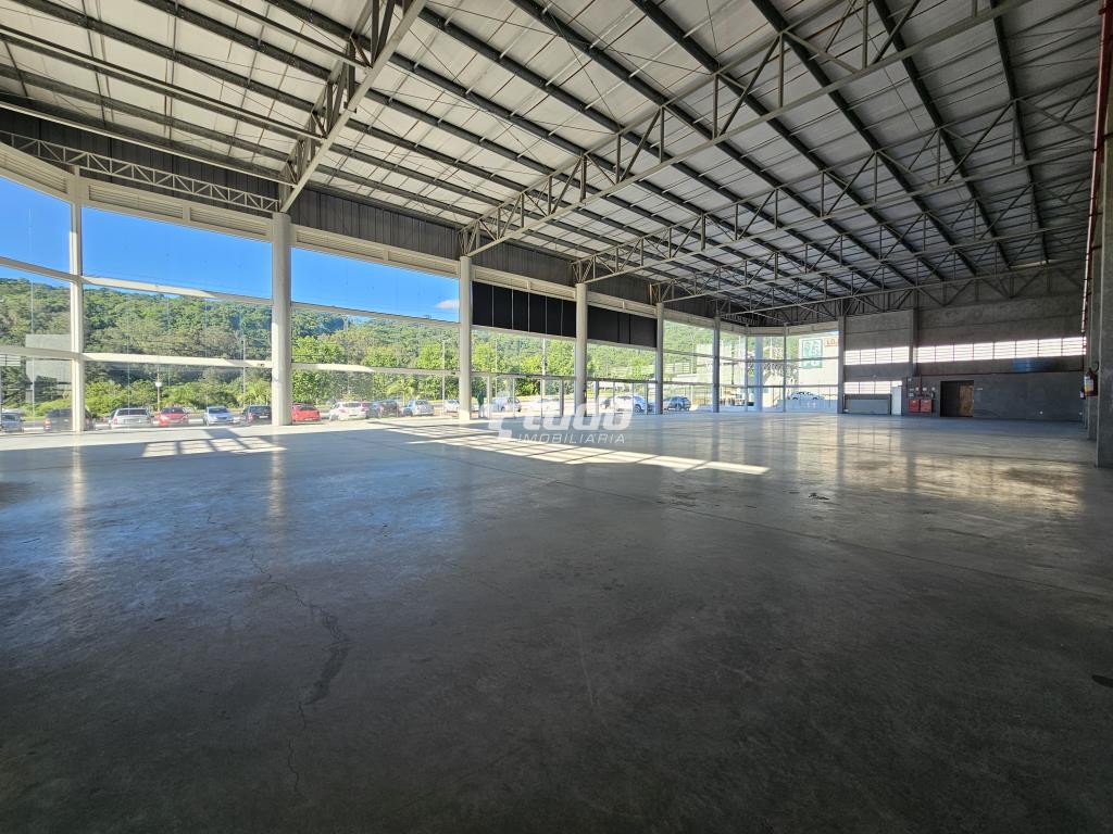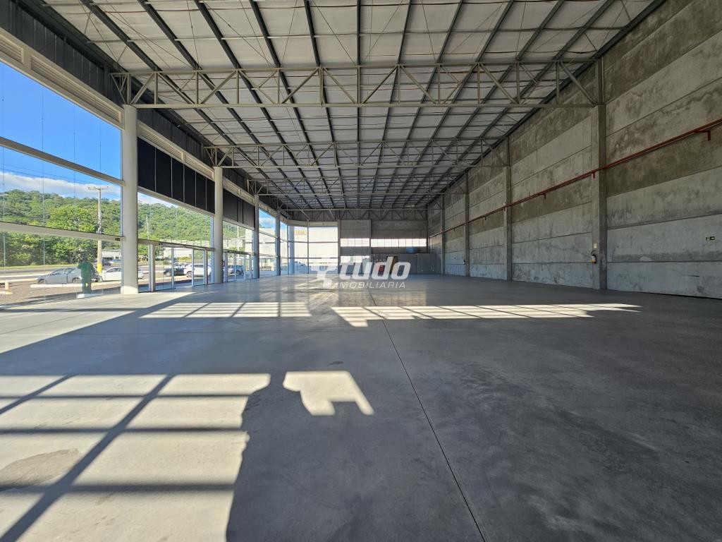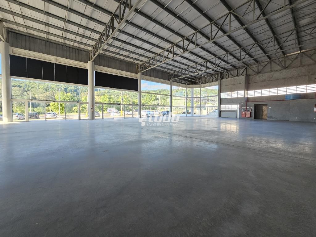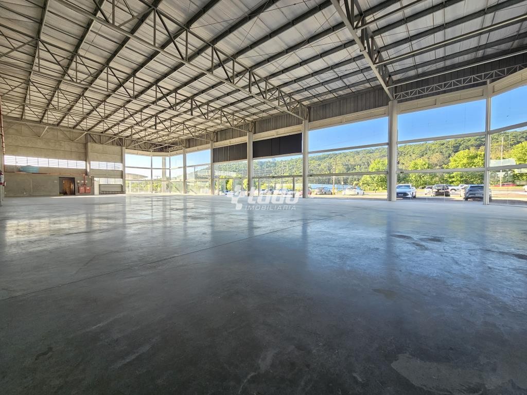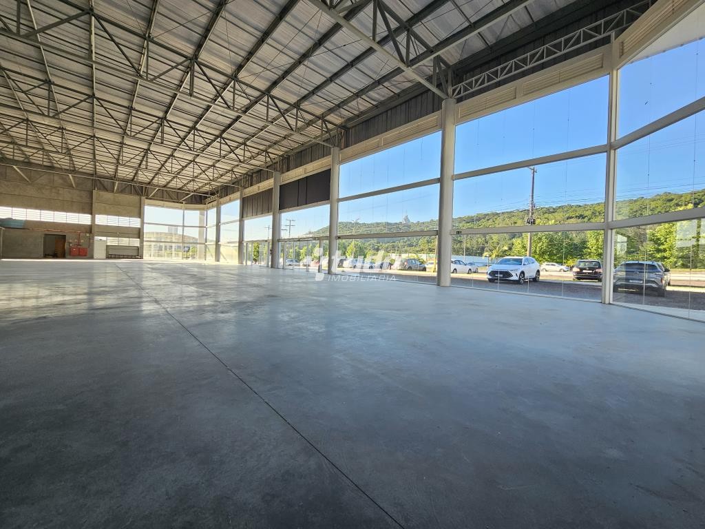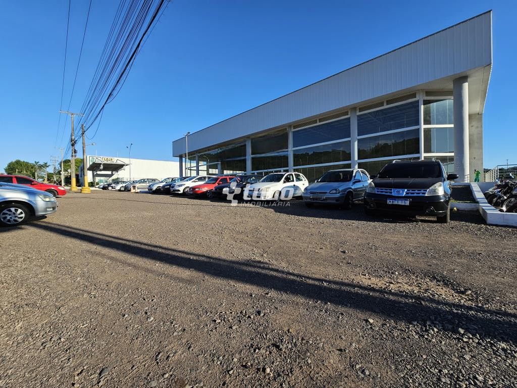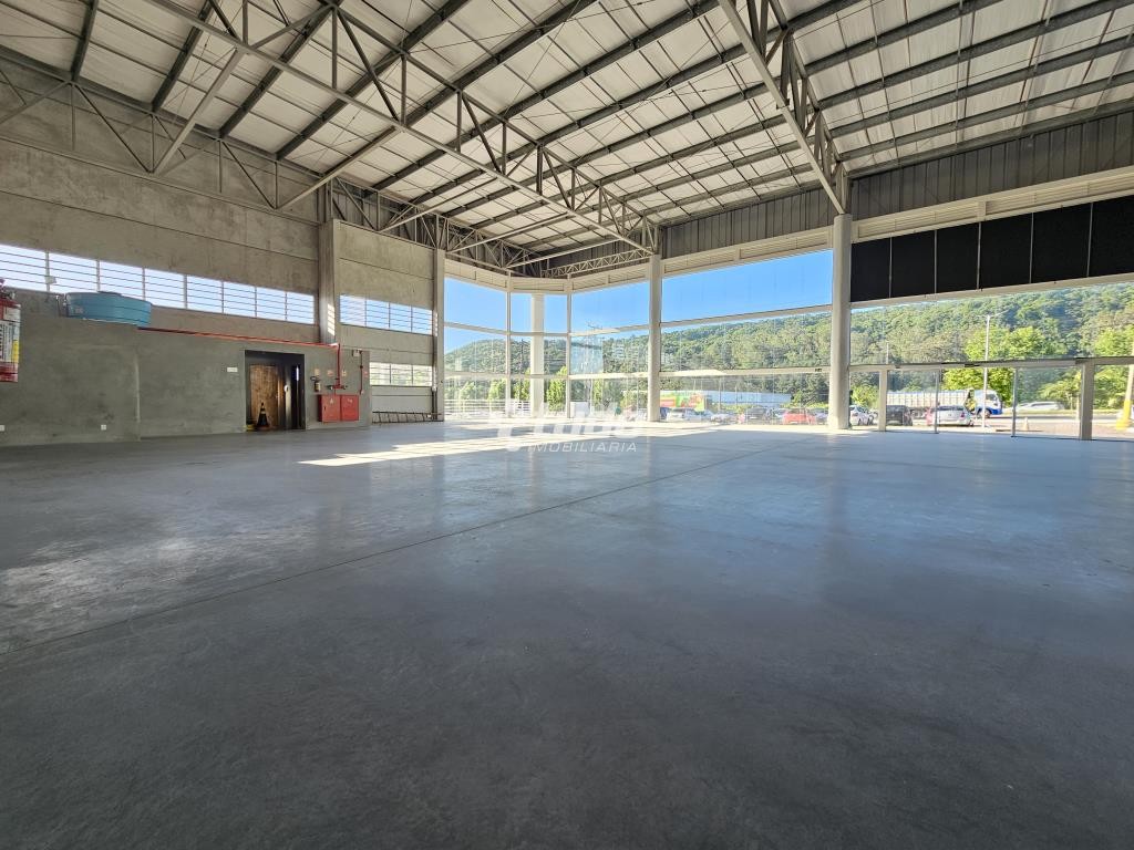 Prédio comercial com pé-direito alto de 8 metros, vitrine, opção para mezanino, duas esperas para cozinha, dois banheiros com acessibilidade e quatro lavabos adicionais. Localizado às margens da rodovia, em Novo Hamburgo.