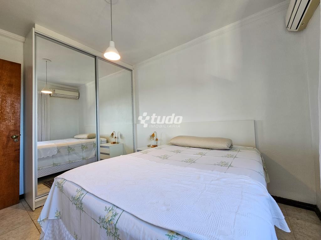 No QUARTO, ar Split com controle remoto, cama box de casal com baú, roupeiro grande branco sob medida com espelho nas portas, mesinha de cabeceira com rodinhas de silicone, aspirador de pó eletrolux, cortinas brancas, tapete, roupas de cama (saia box, capa de colchão, lençol, fronhas, colcha).