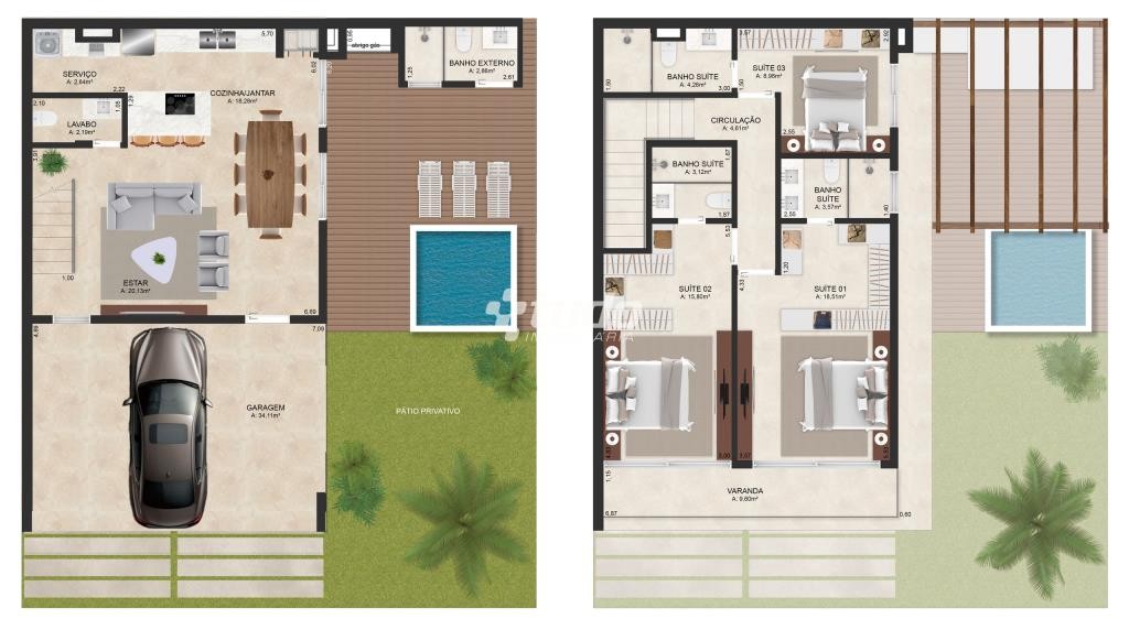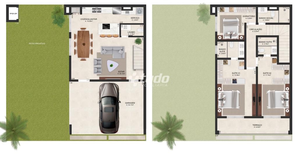 São 22 casas de dois pavimentos com jardins privativos. Residências de 170m² a 200m², com duas plantas padrão. Possibilidade de adaptar as paredes da casa ao seu estilo de vida e personalizar a fachada da sua casa conforme seu gosto.