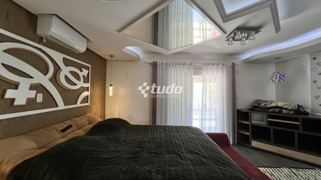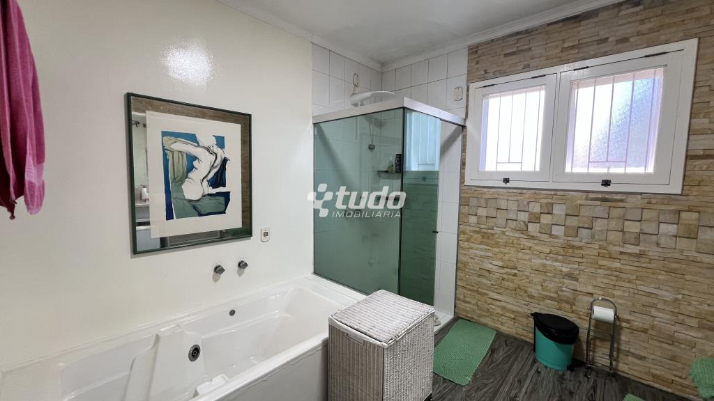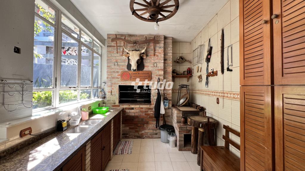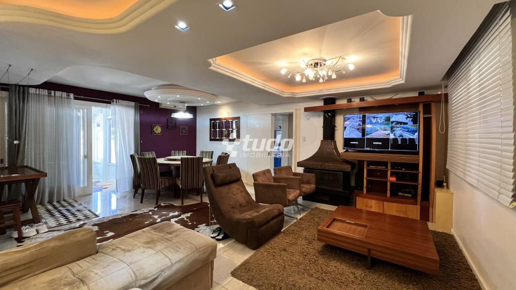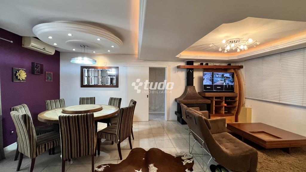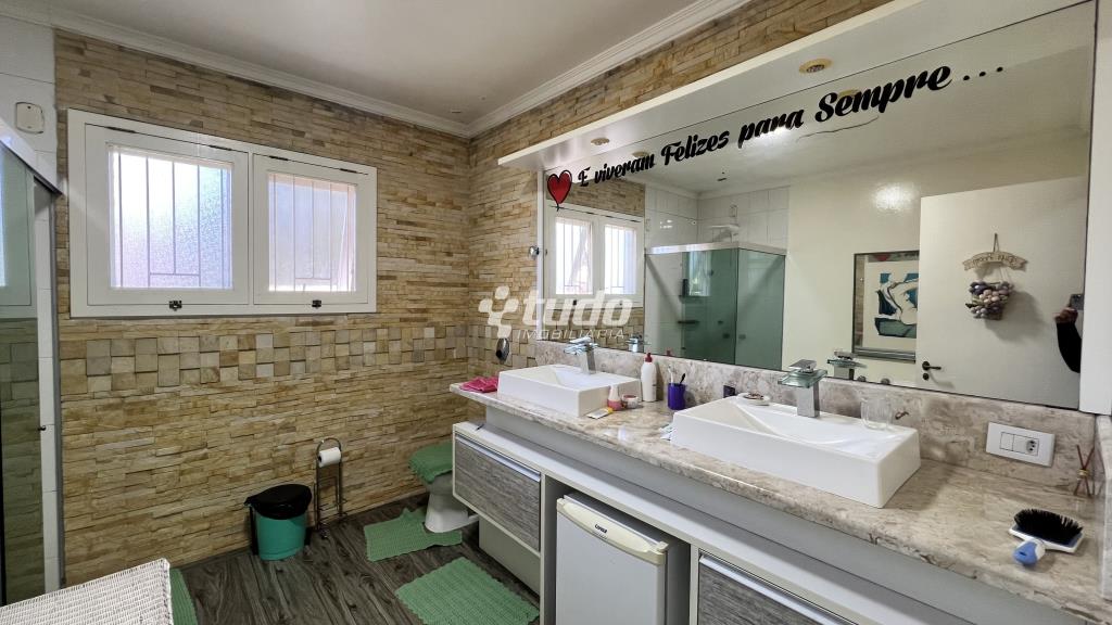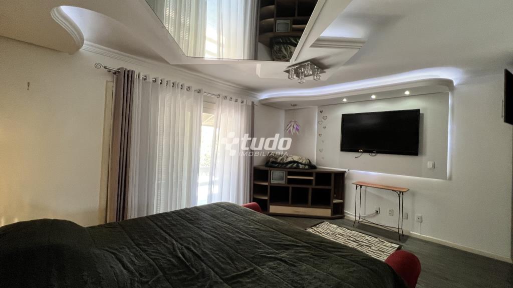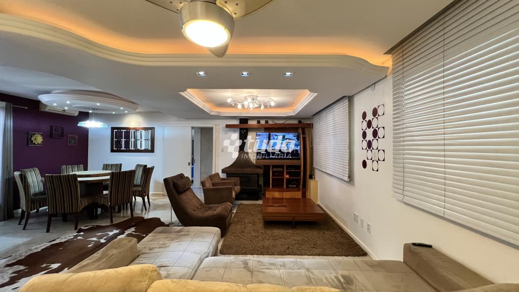 4 suítes para o conforto da família, Sala ampla com três ambientes e lareira, cozinha mobiliada, ampla lavanderia, garagem coberta para até 4 veículos.