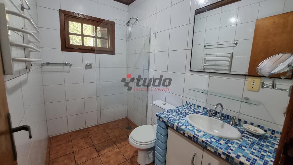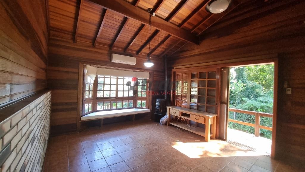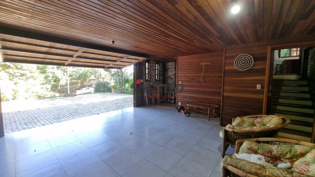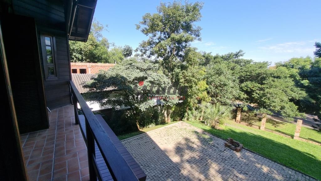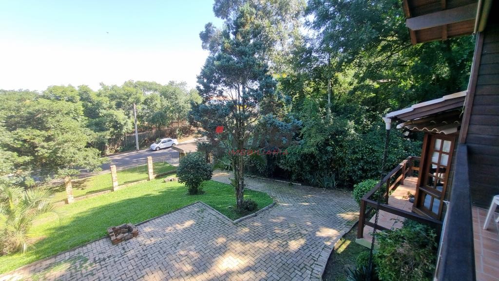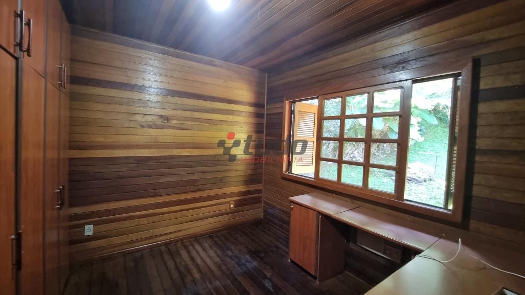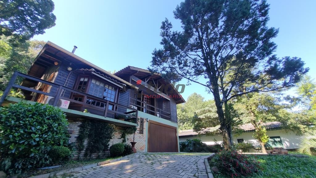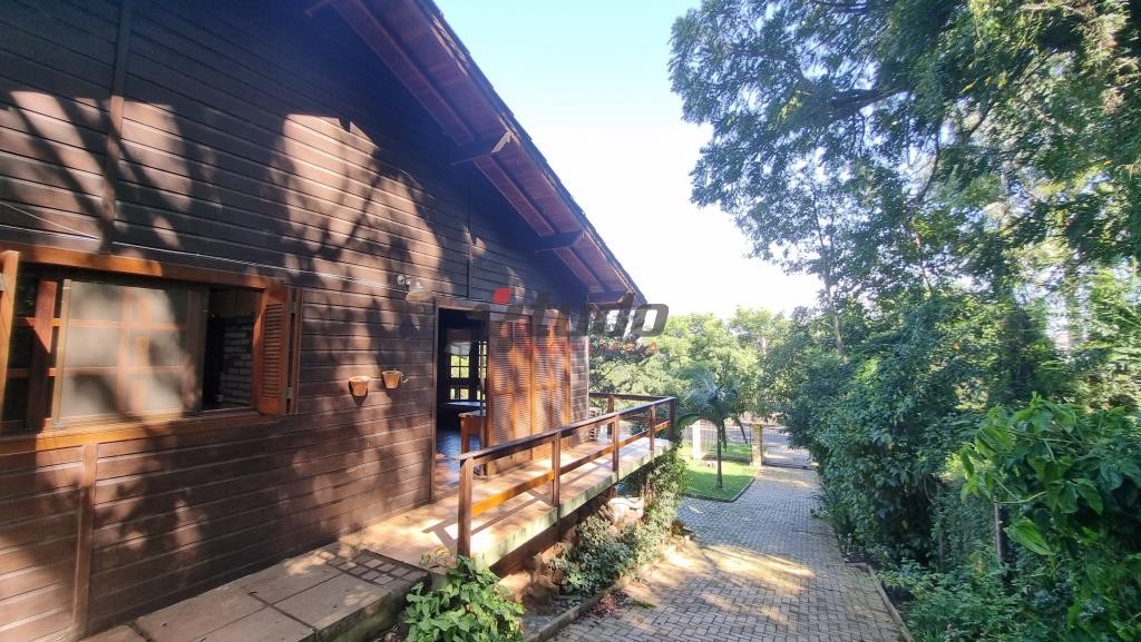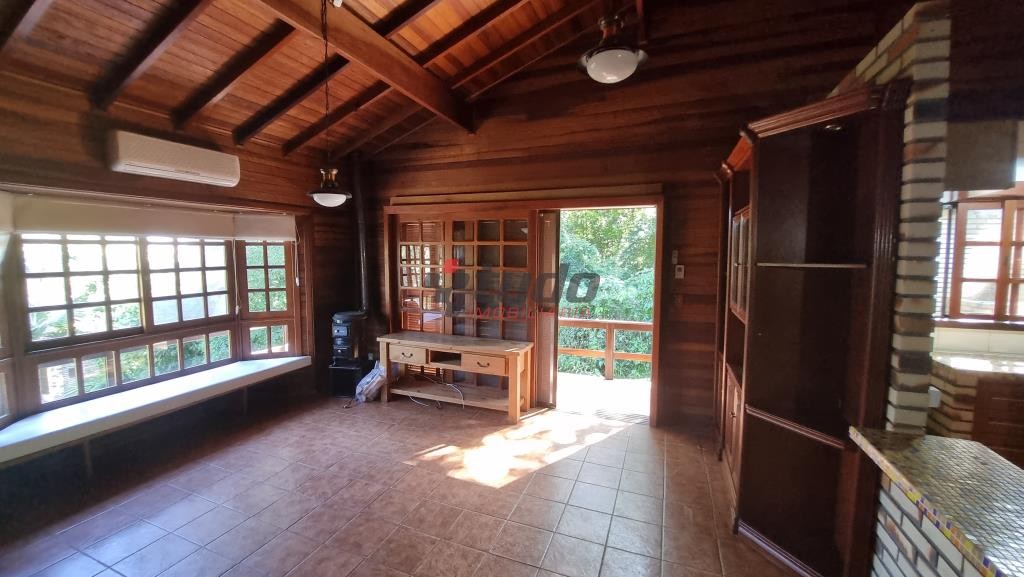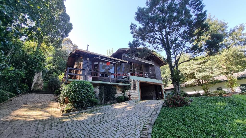 Terreno com 1400 metros quadrados, sobrado construído para aproveitar o declive do terreno, tijolos aparentes e madeira de lei, 149 metros quadrados de área construída, água quente em todas as torneiras, inclusive lavanderia, piso lajotas rústicas nas áreas comuns e madeira nos dormitórios.