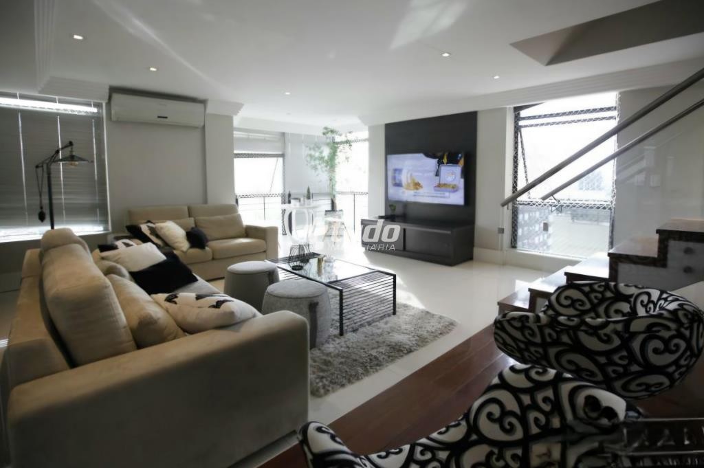 Cobertura com 4 dormitórios (todos suítes), sendo uma suíte master com closet e hidromassagem. Conta com espaço gourmet, piscina, vista privilegiada e 4 banheiros, localizada na Rua Maurício Cardoso, no Centro de Novo Hamburgo.