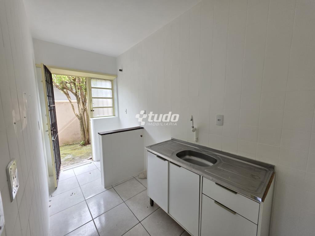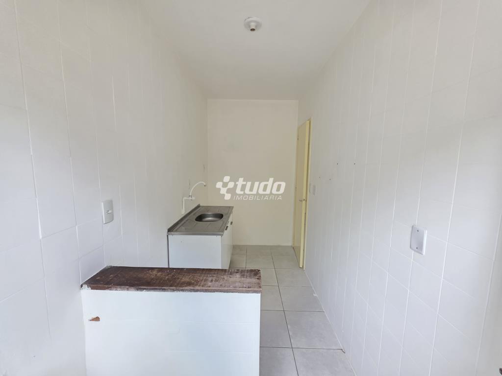Dormitório/ sala, cozinha e área de serviço e pátio privativo com churrasqueira.