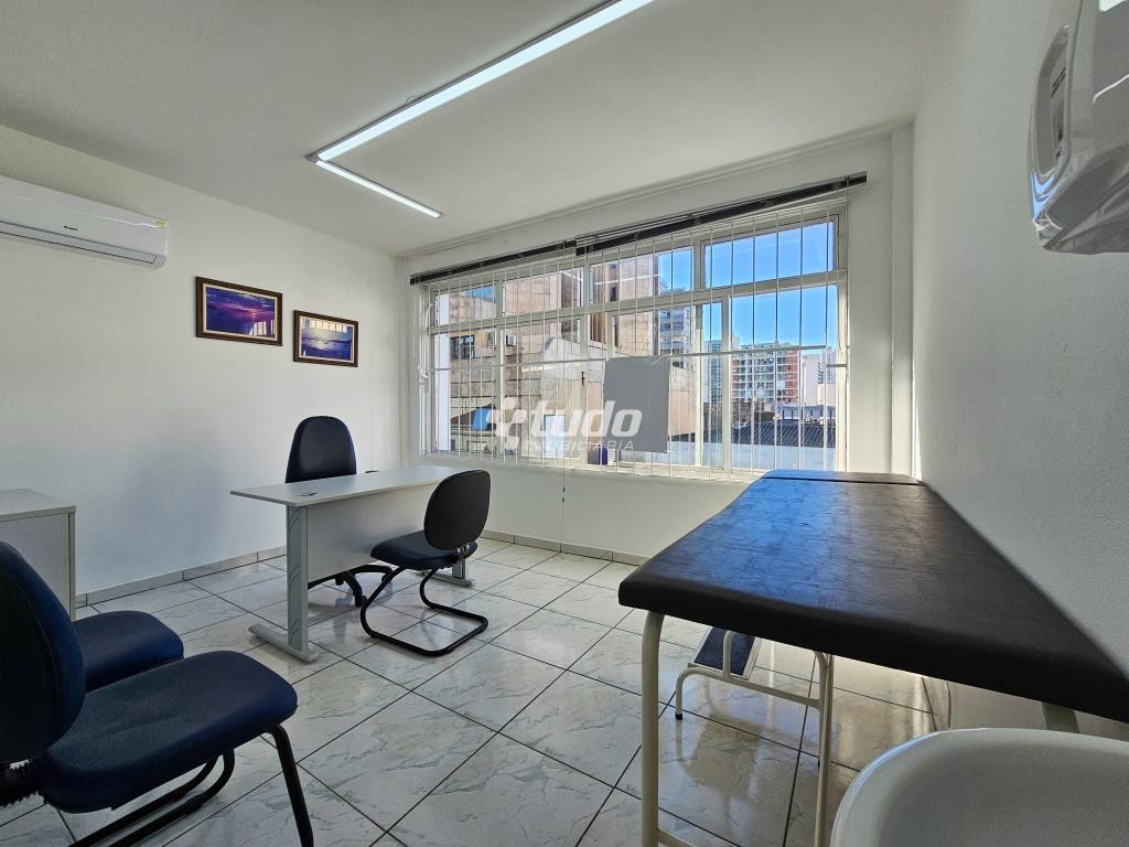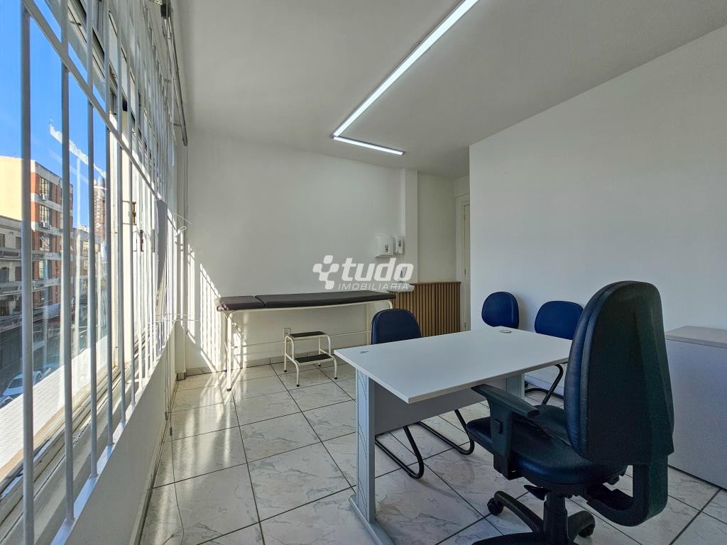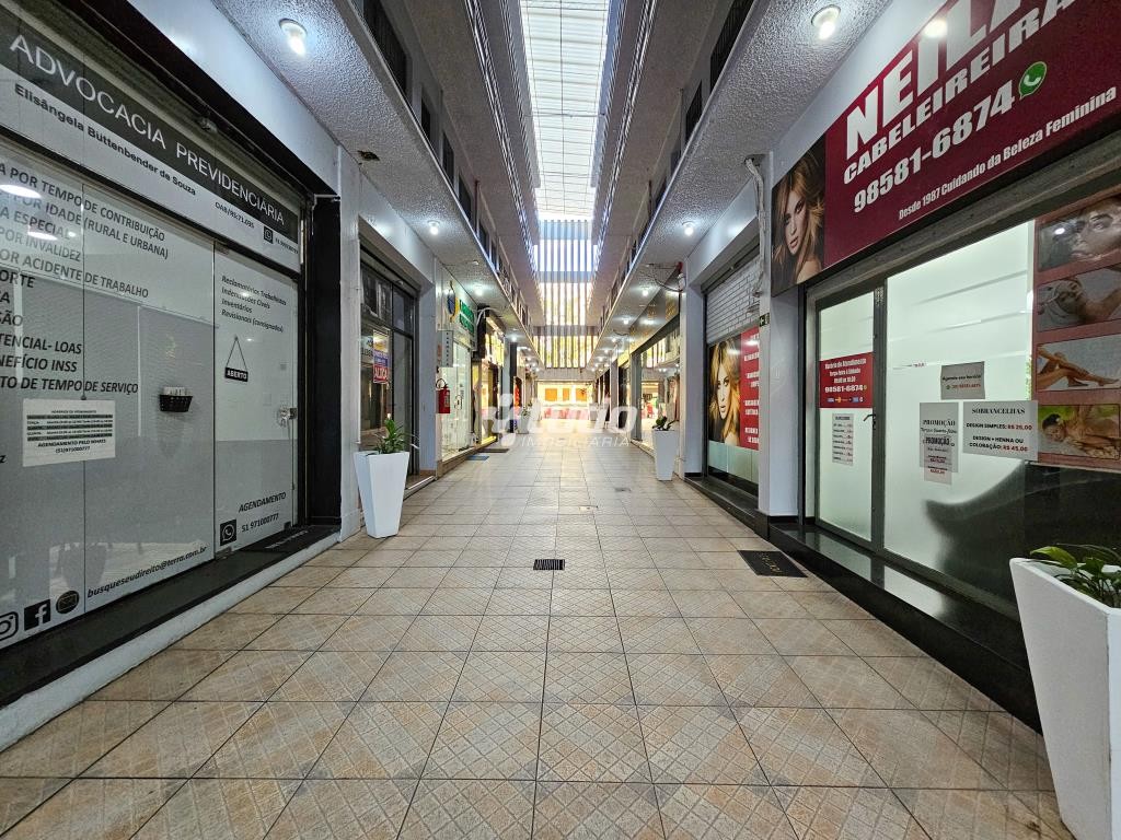 Sala comercial semimobiliada, com 2 salas, cozinha, recepção e localizada em galeria com elevador, acesso pelo Calçadão, no Centro de Novo Hamburgo.