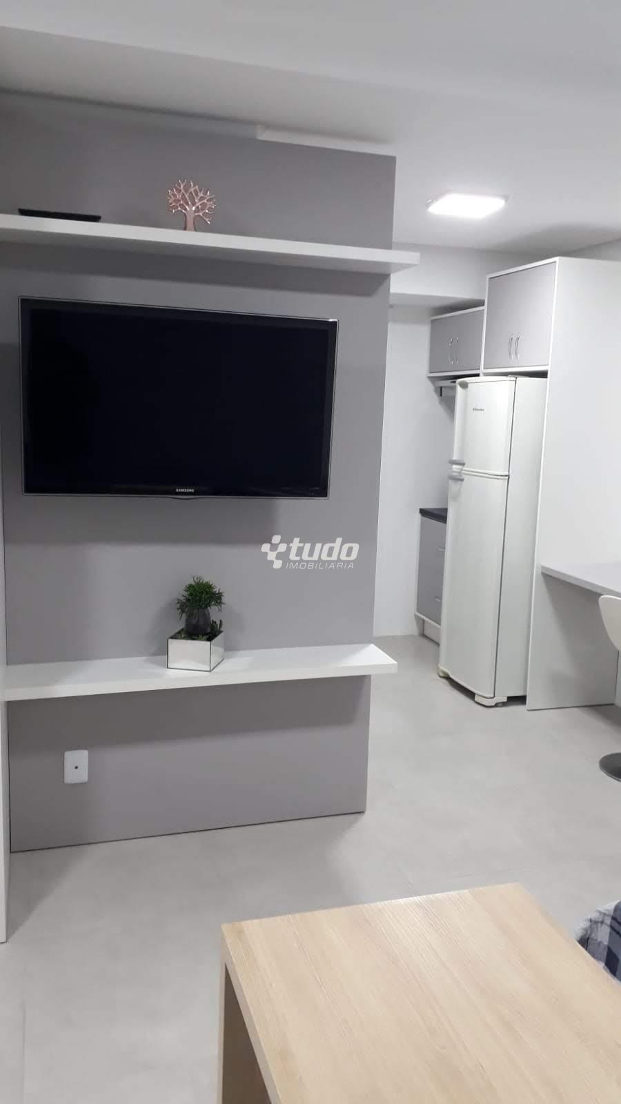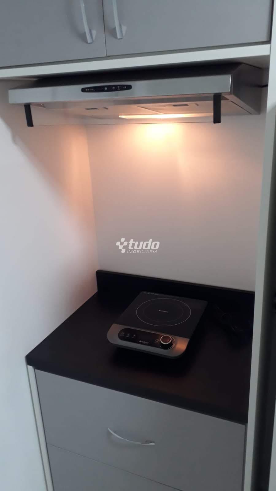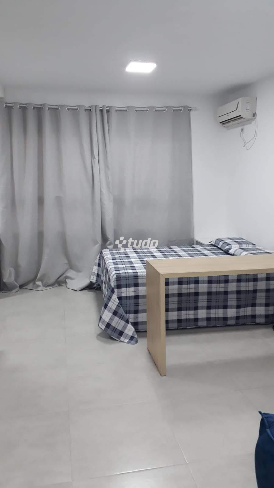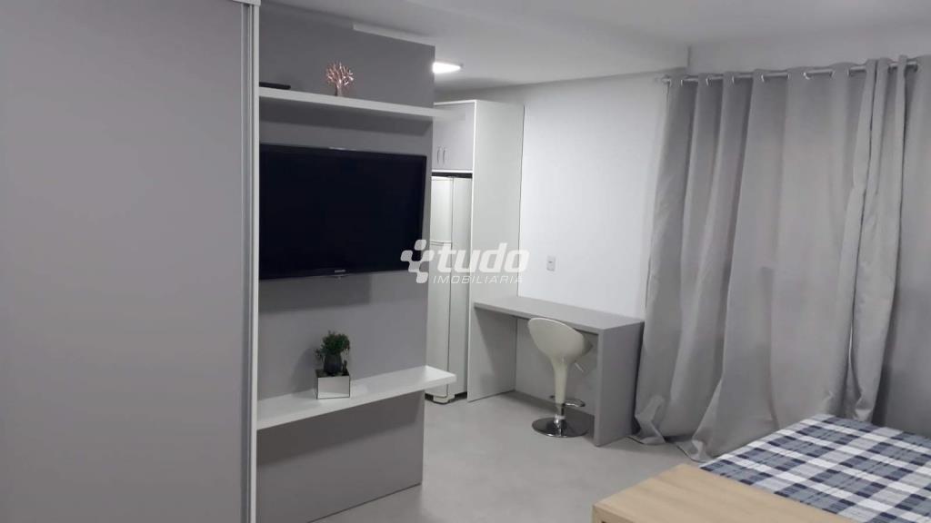Com cozinha, sala de estar e dormitório integrados e banheiro separado.
