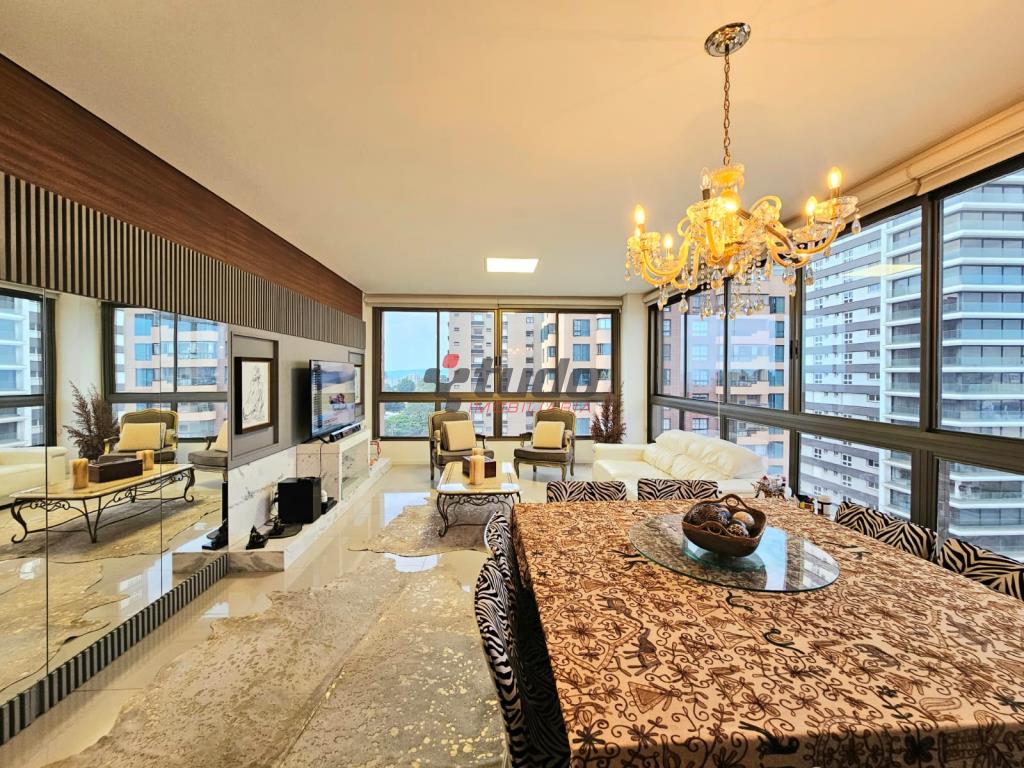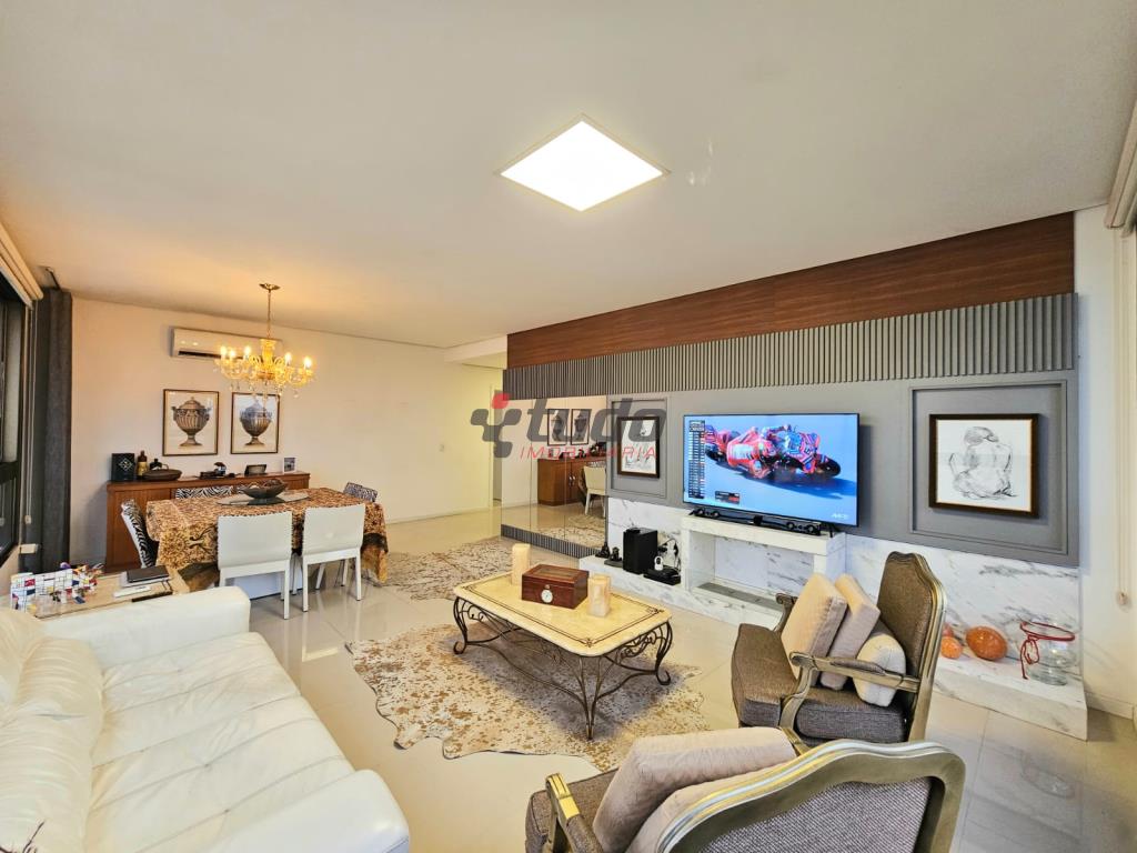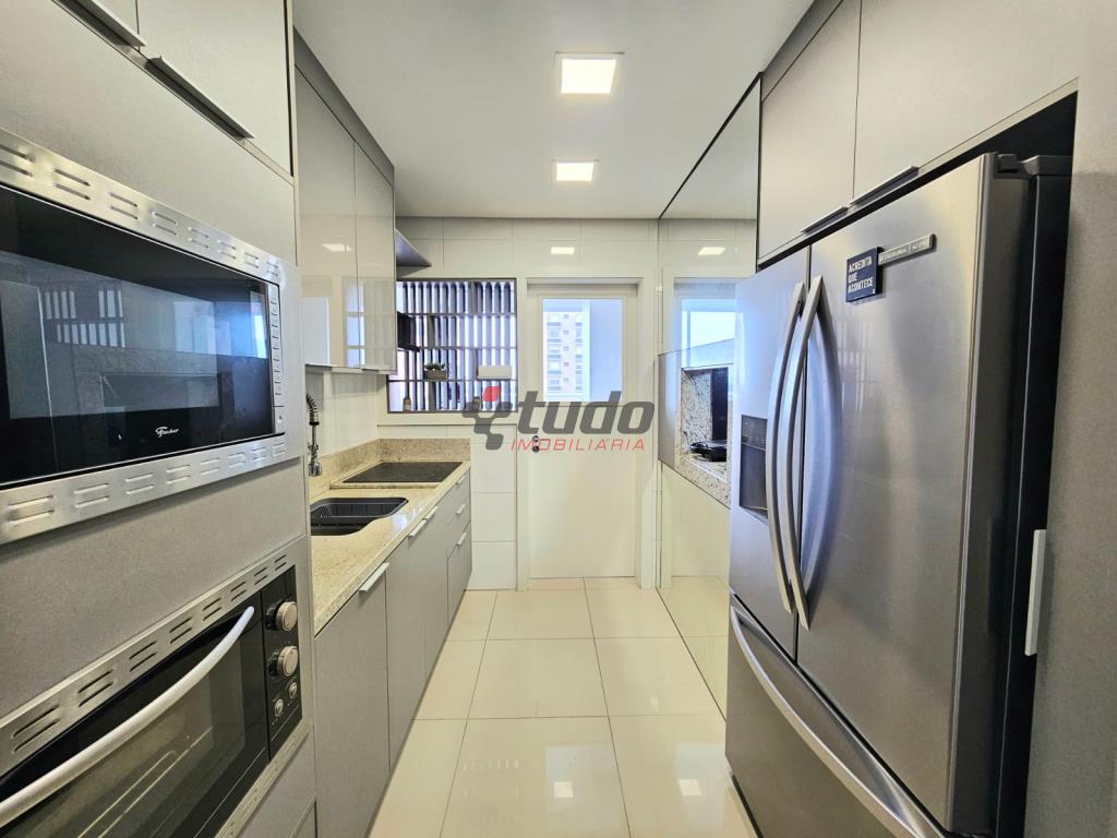 118m² privativos, apartamento de alto padrão com localização privilegiada, sala de estar e jantar integradas, cozinha e área de serviço separadas, churrasqueira na cozinha, lavabo, piso em porcelanto e laminado, 1 suíte master, 2 suítes americanas.