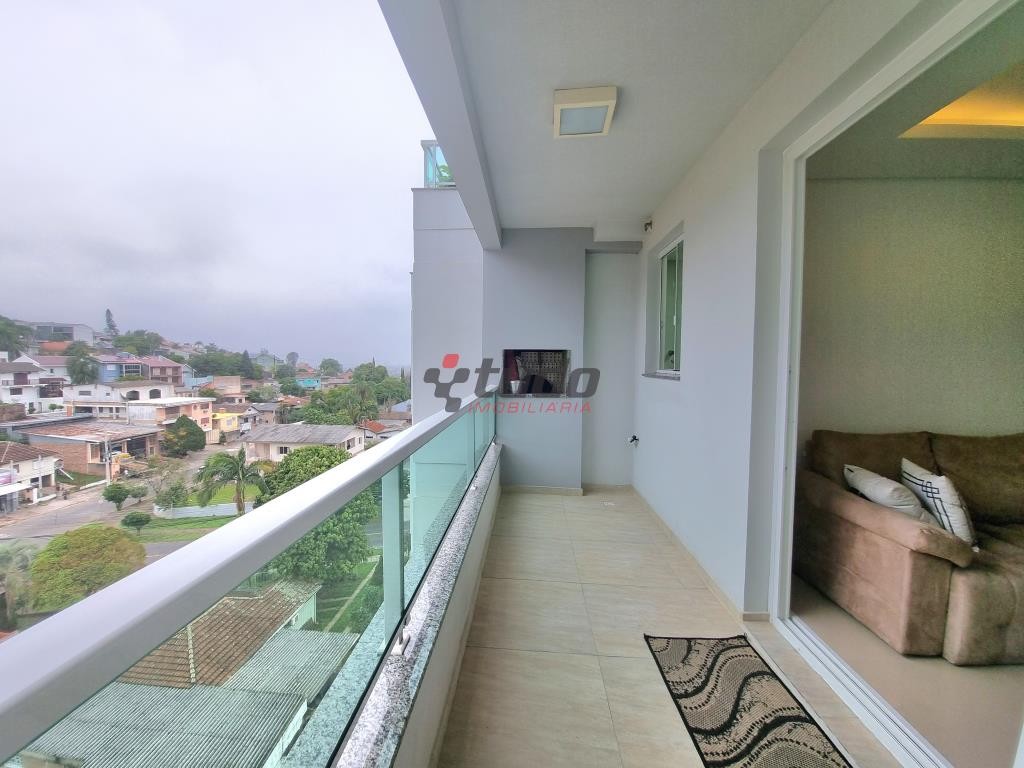 Apartamentos com dois dormitórios (sendo um suíte) sala dois ambientes, banheiro social, cozinha, área de serviço e ampla sacada com churrasqueira. Piso em porcelanato. Duas vagas de garagem.