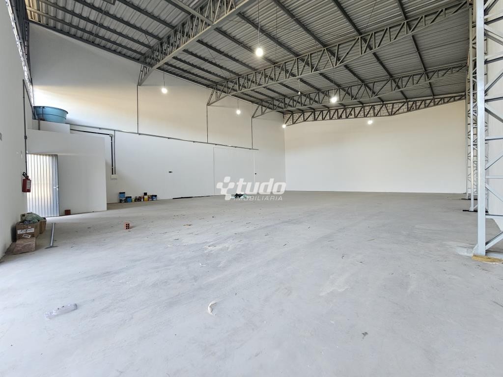 Prédio comercial com pé-direito alto, entrada para caminhão, dois banheiros e estacionamento na frente. Localizado próximo à RS-239, no bairro Lago Azul, em Estância Velha.