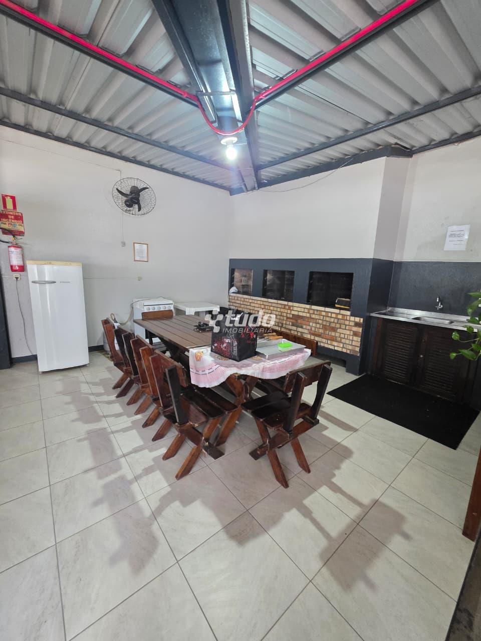 O condomínio oferece elevador, salão de festas, espaço gourmet, porteiro eletrônico, zeladoria, além de poço artesiano e um agradável terraço coletivo para momentos de lazer