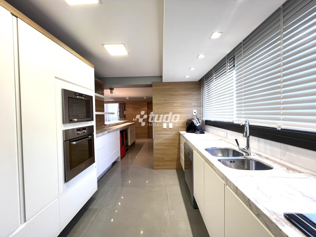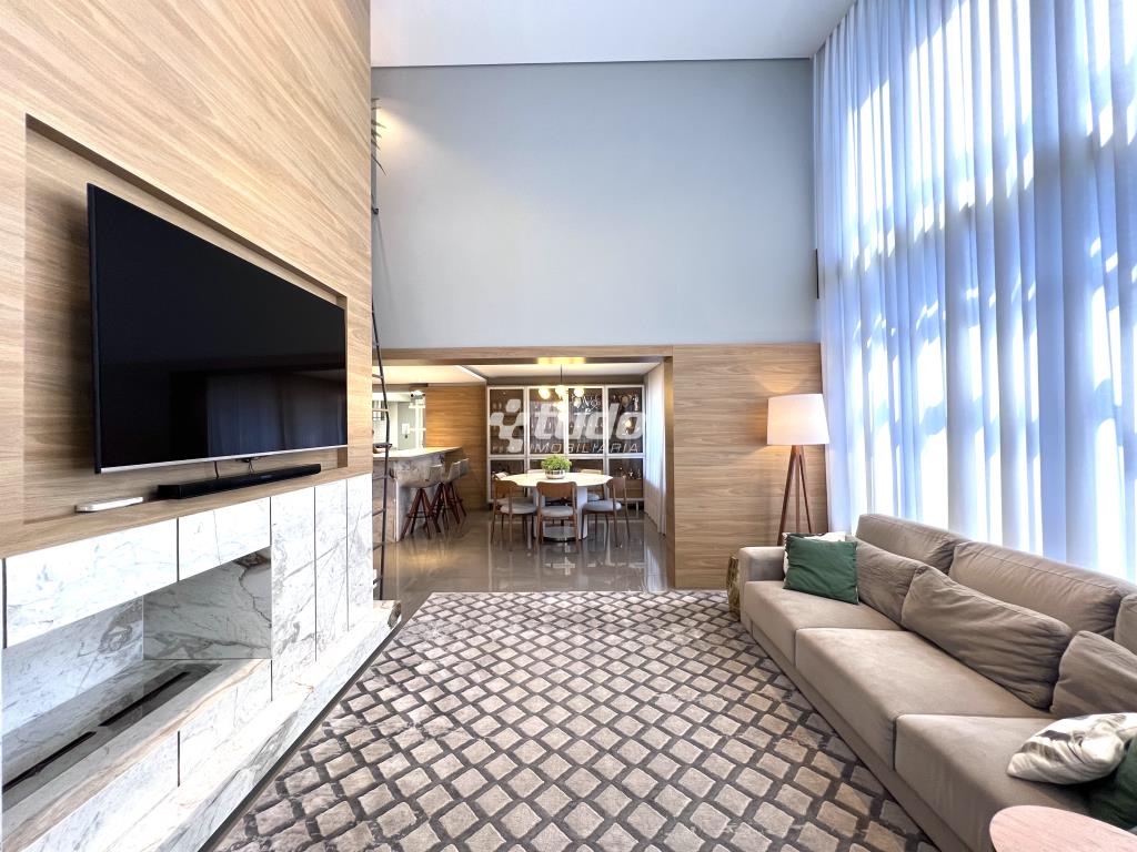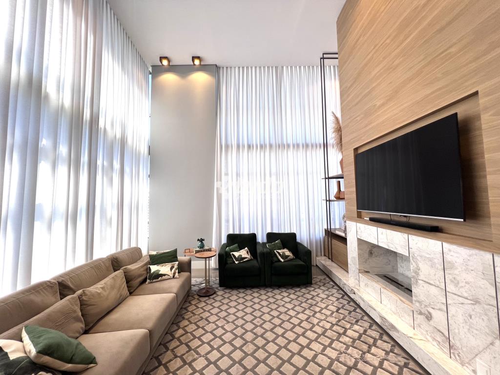 Destaques do imóvel: 3 suítes espaçosas, incluindo master com closet, amplo living com pé-direito duplo e lareira, sala de jantar integrada, lavabo social, cozinha sob medida e área de serviço independentes, 4 vagas de garagem. Climatização e aquecimento a gás, mobiliário e acabamentos de alto padrão