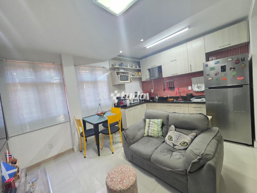 54,55m² privativos, 02 dormitórios, sala, cozinha e area de serviço, garagem coberta, apartamento térreo, ficam todos os móveis planejados.