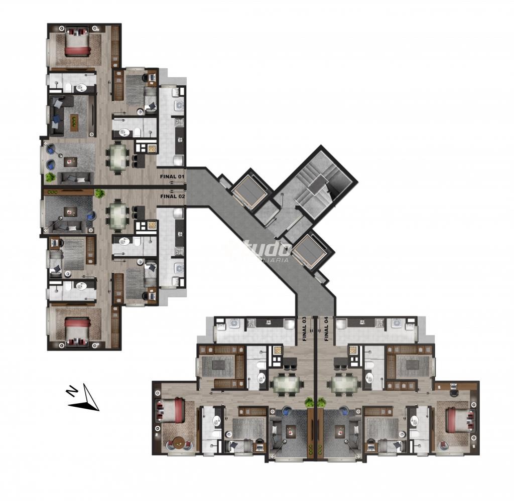 Unidades com 03 dormitórios ( sendo um suíte), sala ampla, churrasqueira, 02 vagas de estacionamento.