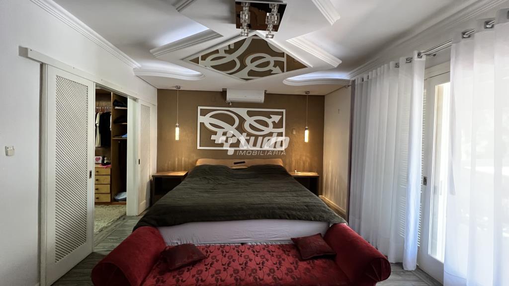 4 suítes para o conforto da família, Sala ampla com três ambientes e lareira, cozinha mobiliada, ampla lavanderia, garagem coberta para até 4 veículos.