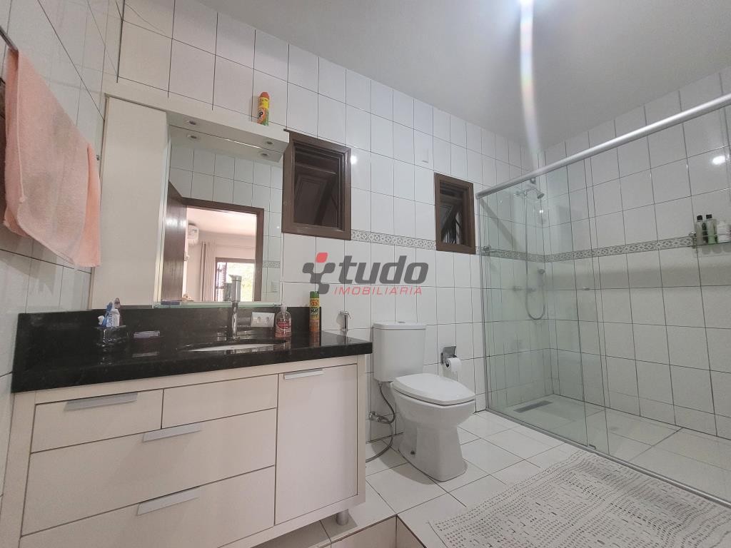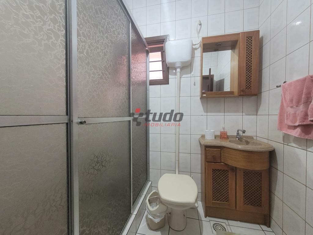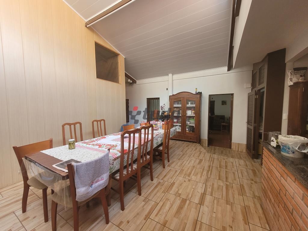 Pavimento superior com sala de estar, sacada ampla, suíte ampla com banheiro e chuveiro com aquecimento à gás (permite opção para chuveiro elétrico), dois outros dormitórios com banheiro comum com chuveiro que possui opção para aquecimento à gás, lavanderia, cozinha campeira com amplo salão e depósito amplo com mezanino.