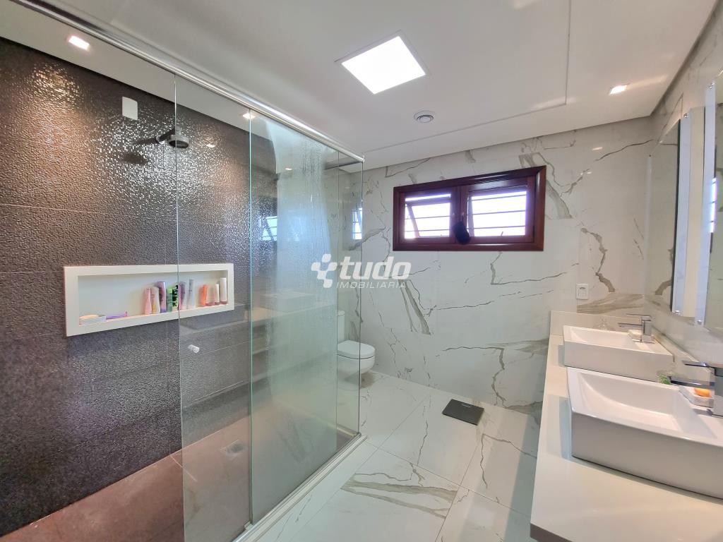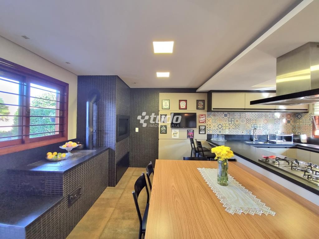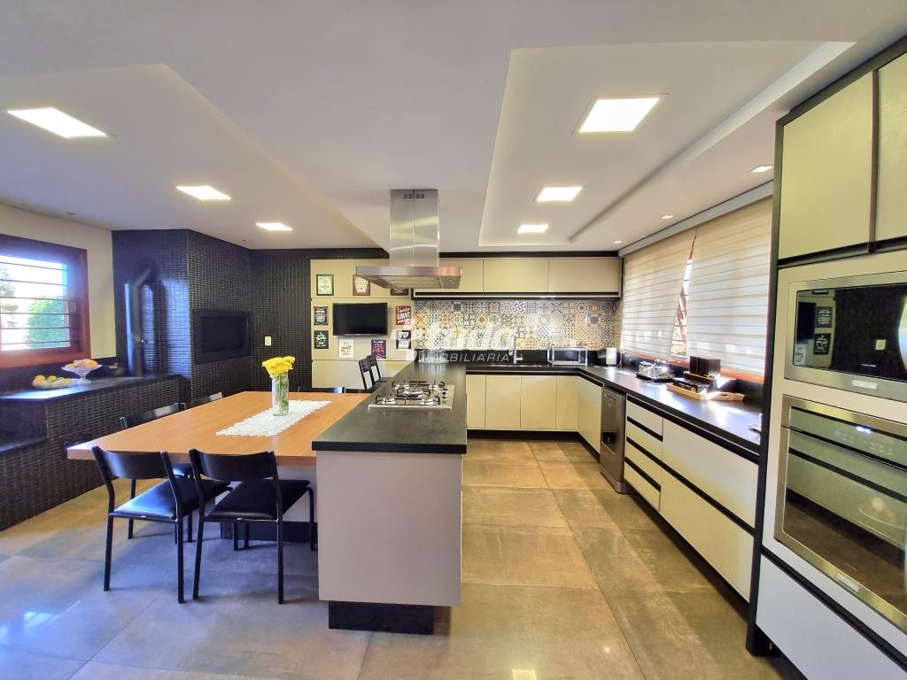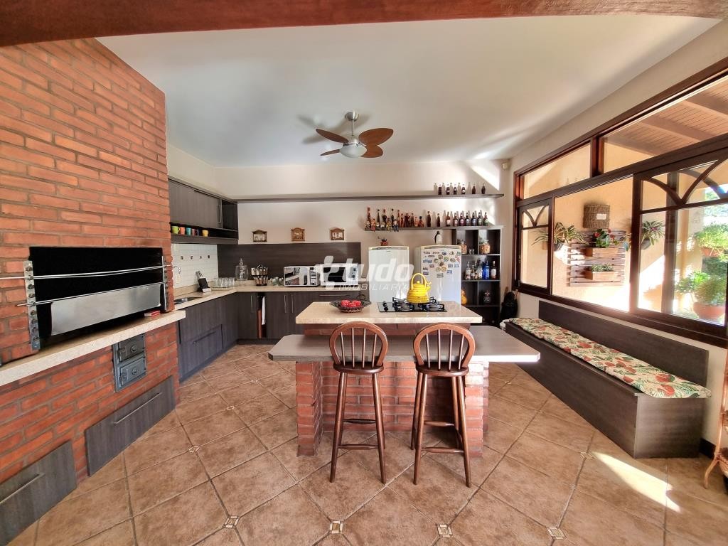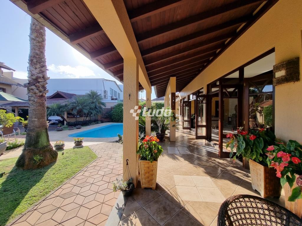 A área externa é um verdadeiro oásis, com um lindo paisagismo, piscina e garagem coberta para 02 veículos. E para os amantes de entretenimento, este imóvel ainda possui um excelente e amplo salão de festas, com móveis sob medida, ilha, fogão campeiro e churrasqueira, uma mesa com espaço para 20 pessoas, uma bela sala com pé direito duplo, banheiro e mezanino sendo utilizado como espaço de jogos.