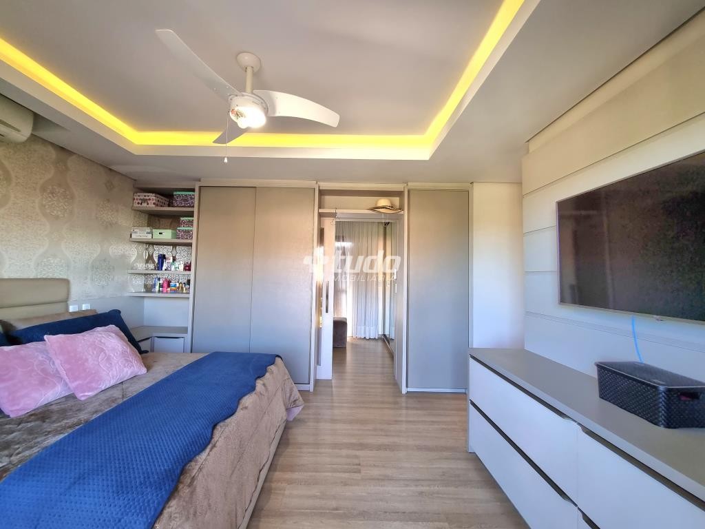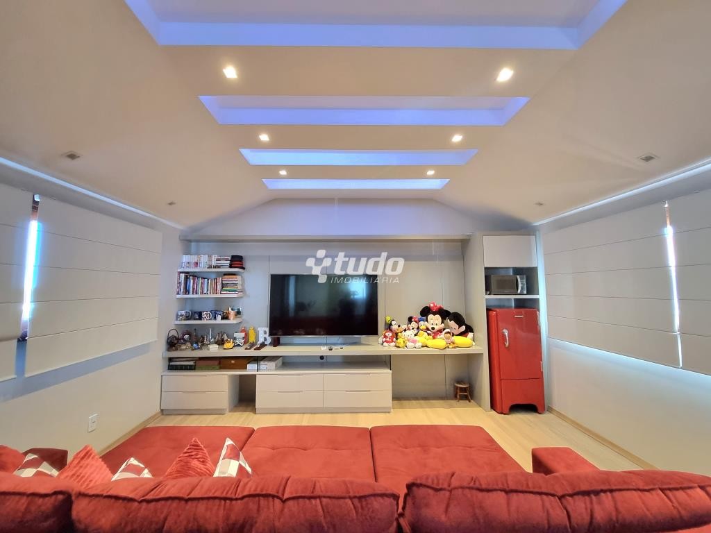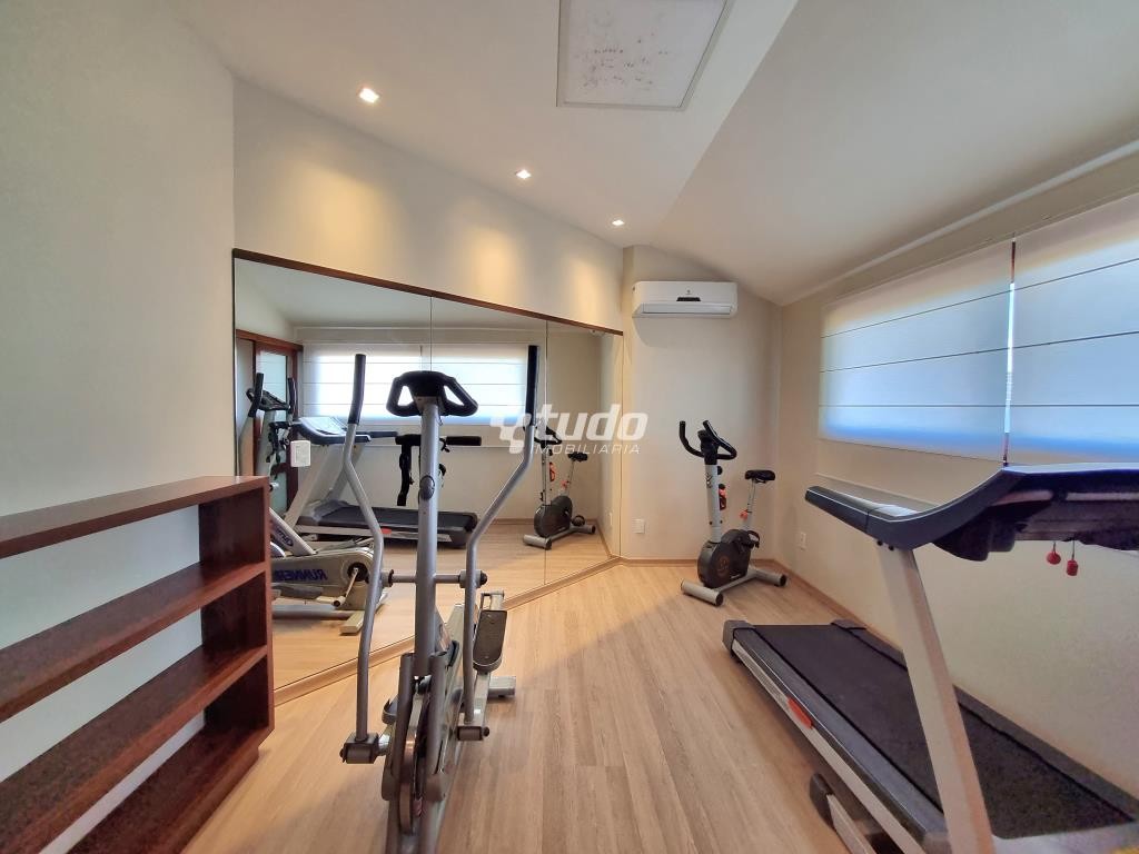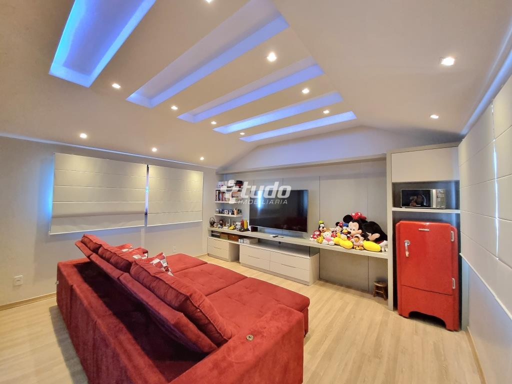 A casa possui 03 dormitórios, incluindo uma suíte com duas sacadas e closet, sala de estar e jantar aconchegantes, cozinha com móveis planejados, tipo americano e fogão campeiro, 03 banheiros, espaço home office, sala de cinema equipada e ainda uma sala fitness.