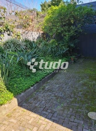 Divisórias em tijolos a vista com parte superior em vidro transparente. Teto alto, 02 lavabos com tampo de mármore, recepção, 04 salas sendo 1 ao lado da recepção, duas junto aos lavabos com acesso ao jardim externo dos fundos e claraboia e uma ao lado da copa.
