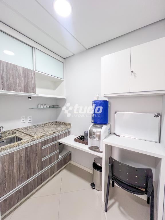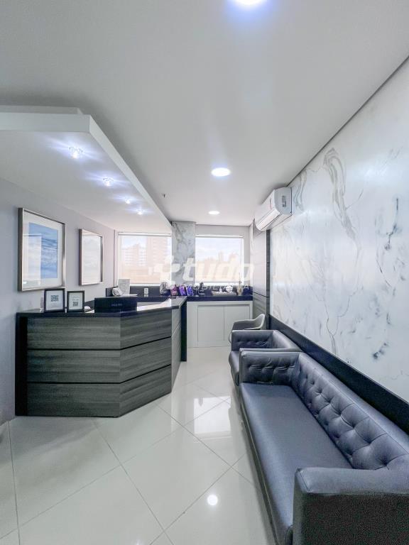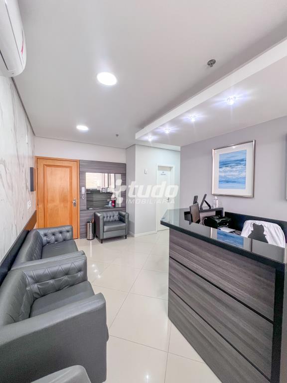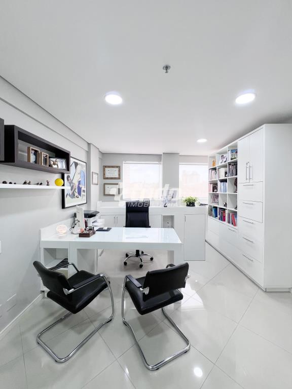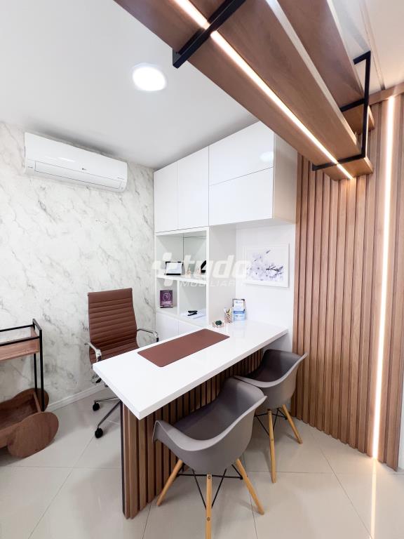 Com 65,60m², o espaço conta com móveis planejados, recepção, duas salas de atendimento, copa, dois banheiros e uma vaga de garagem.