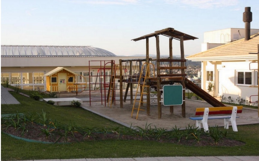 Condomínio com infraestrutura completa, com salão de festas, playground, fitness, piscinas, quadra de tênis, quadra de futebol, brinquedoteca, portaria e uma linda vista da cidade.
